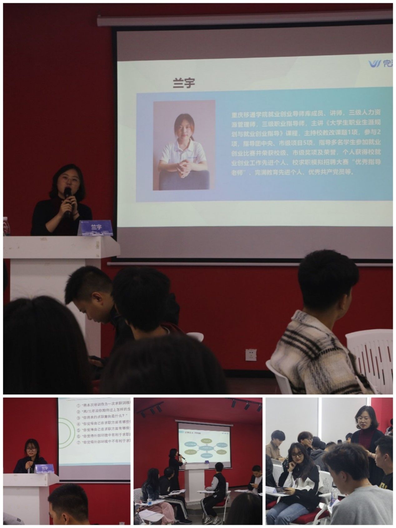 本次由兰宇、童学容、李佳、阙小梅四位老师带来的求职讲座圆满结束,活动中参与者热情洋溢、对未来充满信心,让同学们对简历的制作以及未来面试时的技巧有了细到的了解。不仅有助于同学们往后的发展,也提高了同学们的逻辑思维;增进了同学们的就业意识,帮助同学们确立合适的就业岗位,构筑自己的人生蓝图,放飞梦想,实现人生价值,奉献社会。