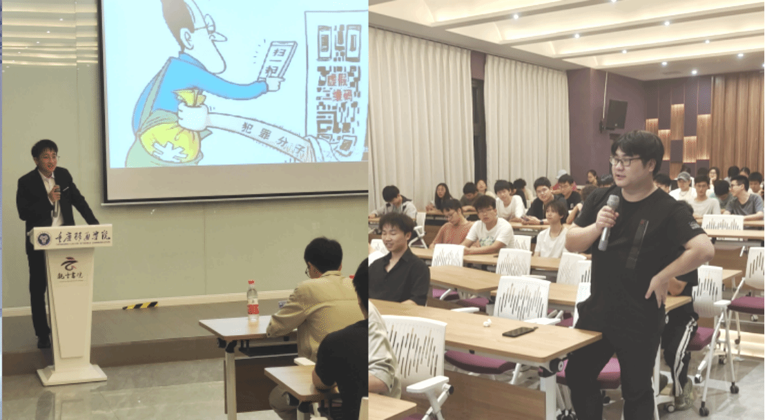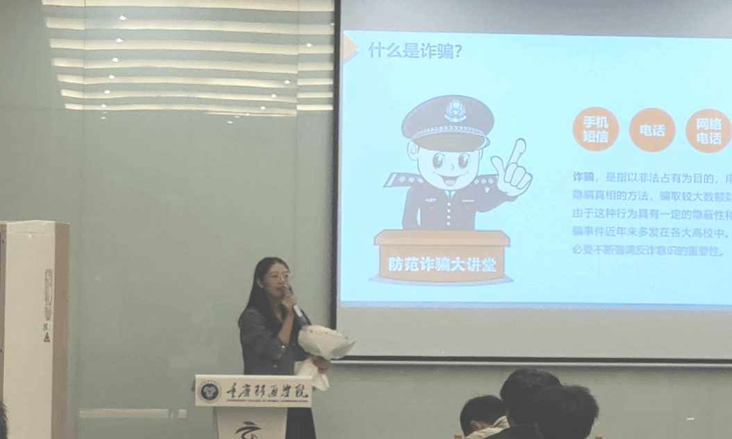 “虽然同学们都已经是成年人,有辨别是非的能力,但是在面对各种各样的诈骗形式时,还是会有辨识不足的现象存在……”李进老师从学校学生的真实案例出发,诚挚提醒同学们要提高防诈骗意识。同时,李进老师就各类传销、推销电话进行提醒:只要提到赚钱就要三思而后行,警惕警惕再警惕。在李进老师的讲述中让同学们明白,看似离同学们很远的传销组织,实则离我们生活很近,在日常生活要提高防诈骗意识。