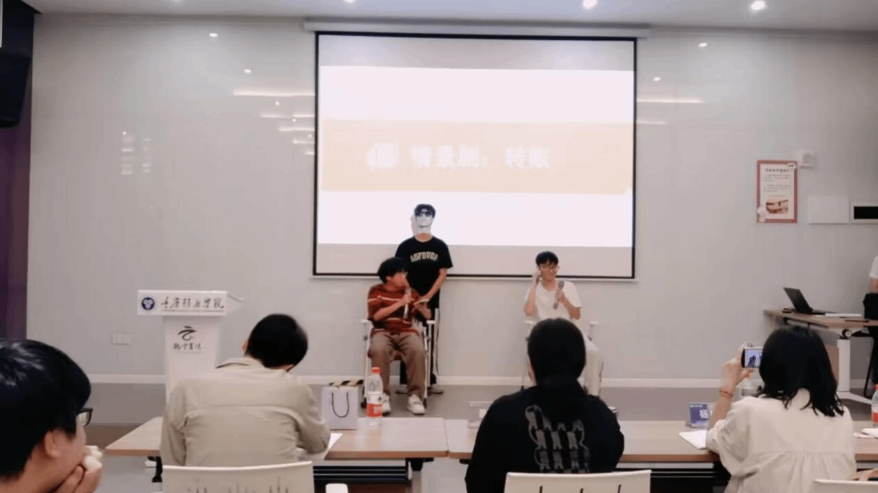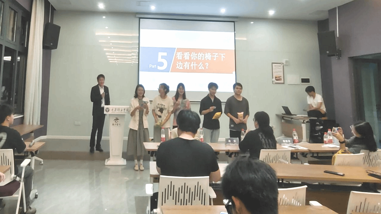 “真钱假钱如何辨别,这里有三个小技巧来辨别是否是假钱……”即使当下大学生们减少了现金的接触,但学习辨识技巧也能教会家中老人和小孩。与此同时,年级会上迎来一个小游戏高潮。在主持人的提醒下,同学们发现凳子下有纸条,部分纸条上写着“奖”字,获得“奖”字的同学都很开心能够获得礼品。但主持人突然讲道,各个同学你们拿到了“奖”但是也不一定就能中奖,需要验证。主持人摇身一变拿出验光笔一一核验“奖”字下是否有痕,有才代表中奖。游戏环节以轻松愉快的氛围加深了同学们要对现金真假辨别的意识,假钱就跟假的纸条一样,到手的不一定是真,要随时提高警惕。