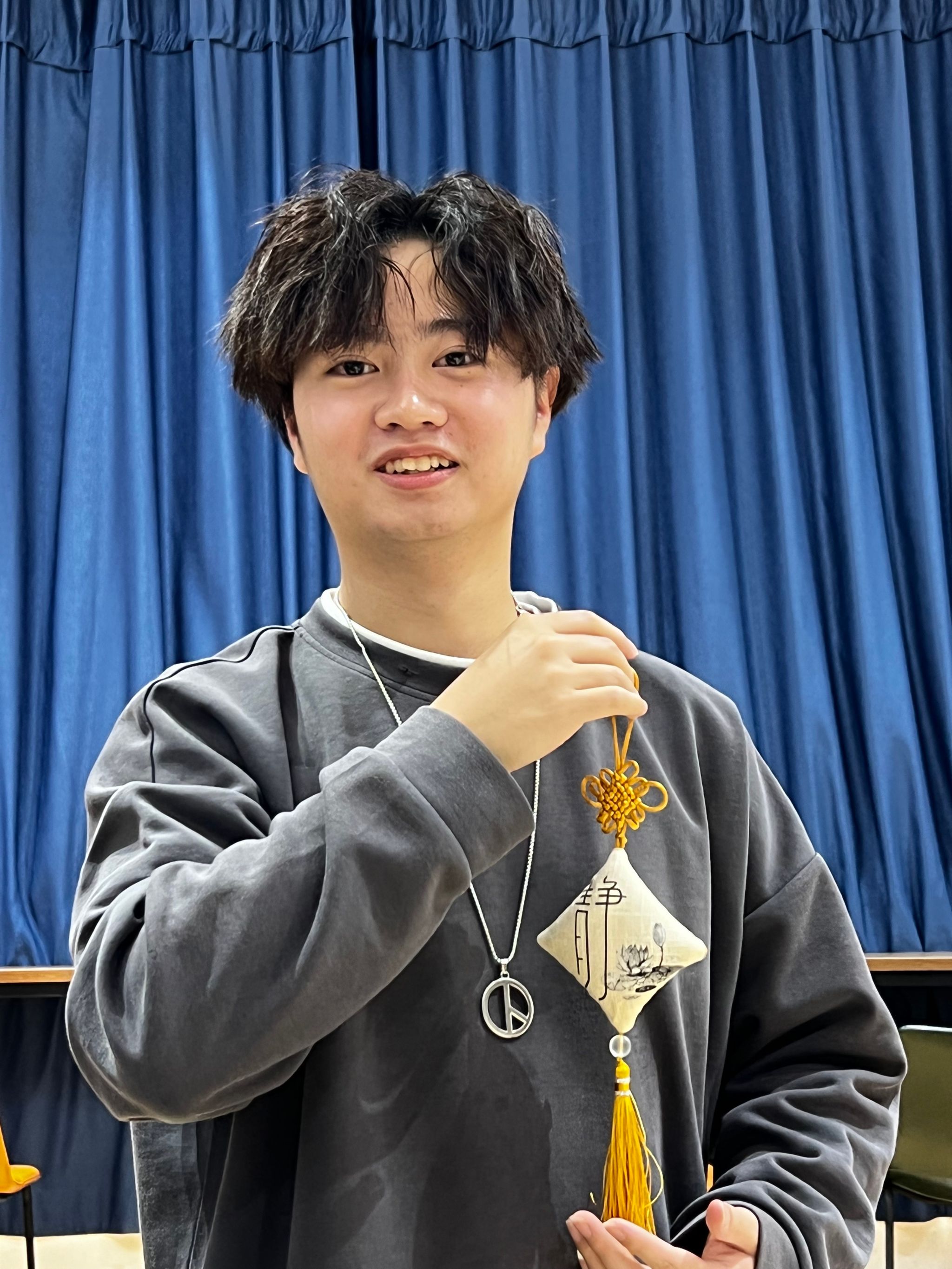 女生在手工方面不得不说较之于男生更有优势,邓星鑫、李梦源几位女同学的香囊成品有如成品图般精美。而男生则稍显逊色,在彼此进行充分经验交流(互坑)下,与女生同款的香囊对比起来仿佛营养不良,瘦到皮包骨头。刘鑫尧同学的香囊成品可算是男生中较为出色的了,为此刘鑫尧也甚感自豪。