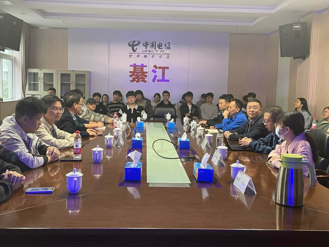 为了促进我院与企业的合作关系,增进同学们对企业运营的了解以及对未来求职领域的认知,10月26日上午,计算机学院教学副院长林泽金、计算机学院学工副院长周俊、计算机学院教研室主任卢星儒带领该学院各专业的40名学生前往中国电信有限公司綦江分公司进行认知实习。
