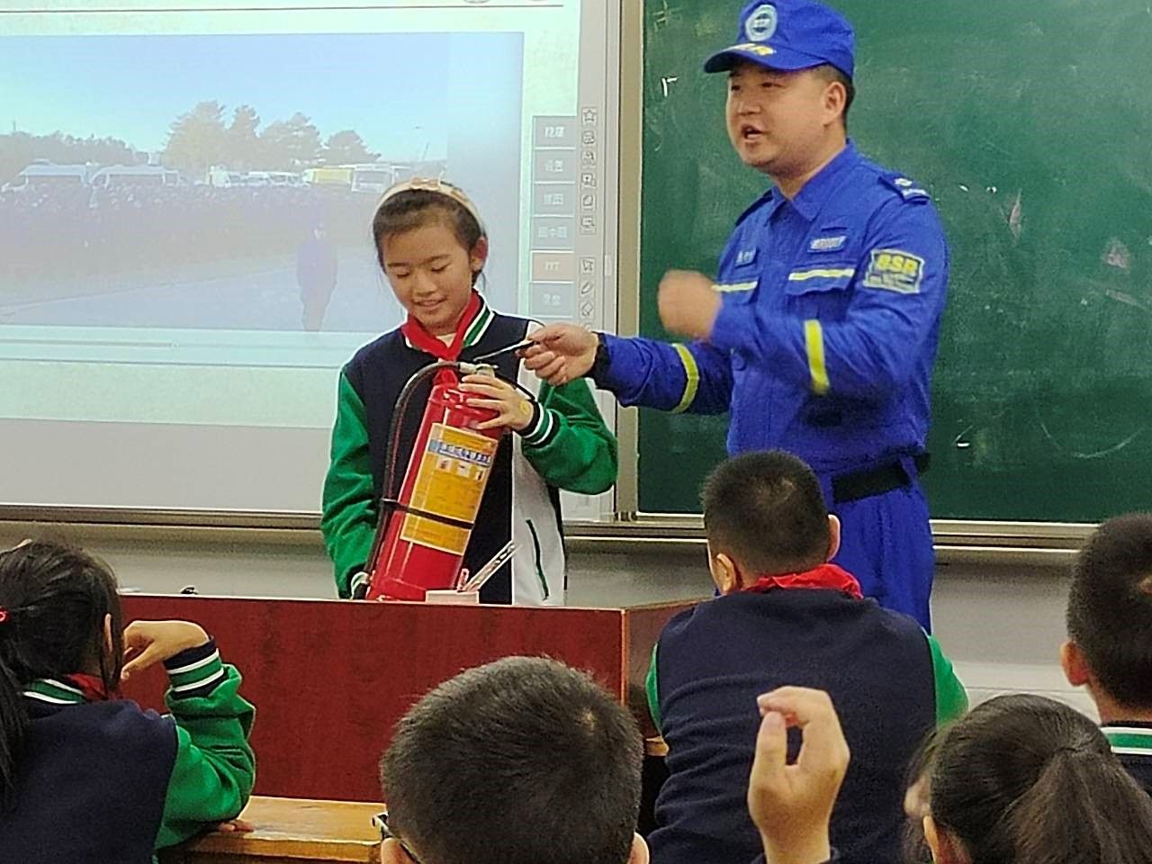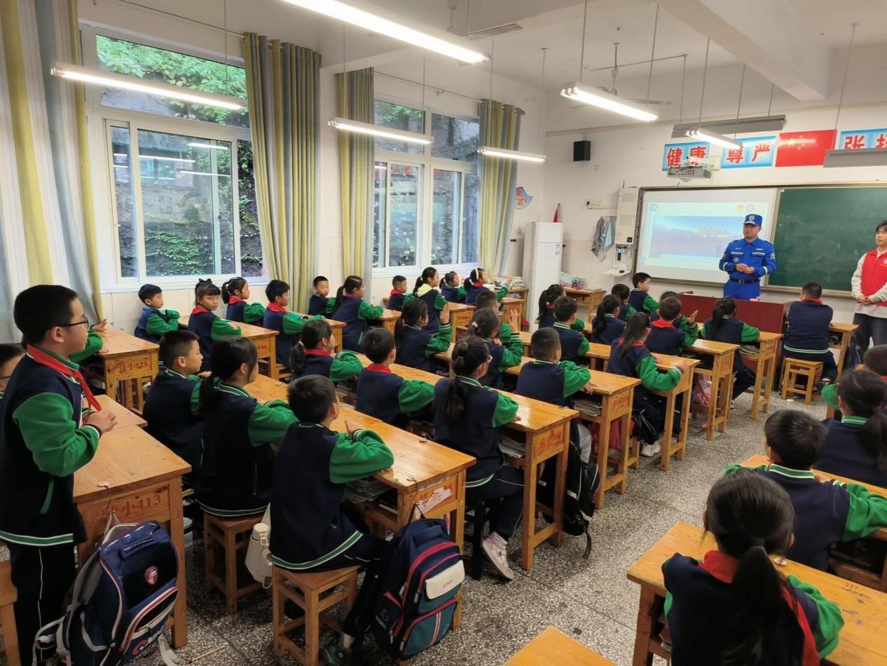 授课开始前,同学们既兴奋又期待。志愿者看着小朋友求知的眼神,深知此次授课责任重大。在授课中,志愿者首先用视频的方式向大家阐释了“什么是防灾减灾”,并将日常生活易发生的灾难,分为地震篇、洪水篇、消防篇,进行详细讲解。在志愿者授课的同时也对孩子们进行提问式的互动,让小朋友们深入其中,了解更多防灾减灾的相关知识。在举手回答中小朋友们收获了众多防灾减灾的知识,大大加深了其对于灾害意识的认知。