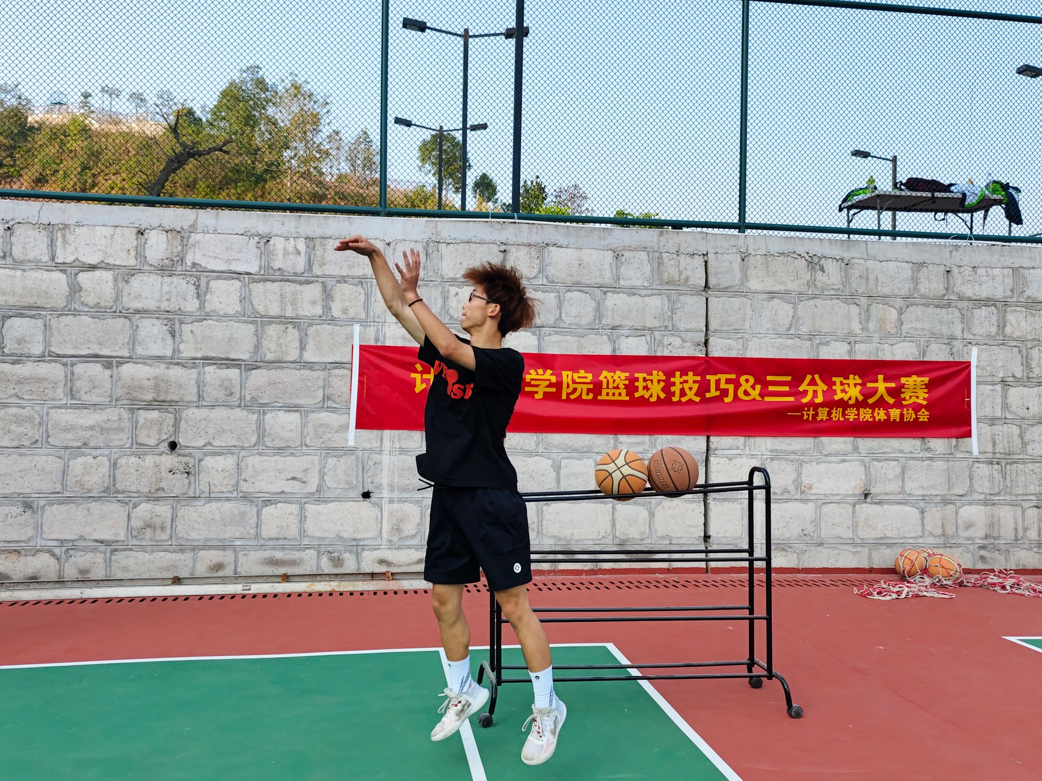 玉堂金马,正年少归来,风流如画。计算机学院于2023年11月1日下午16点,在古剑篮球场举行了计算机学院篮球技巧&三分球大赛活动。远投三分,步步精彩,每次跃起,都是梦想! 每滴汗水,都是看得见的努力!为了锻炼同学们三分球的投射能力,提高同学们自己的篮球技能,激发同学们的自我挑战与对篮球的热爱,活动为此开展,呐喊声在这个比往常要冷的秋天里让篮球比赛不断升温。