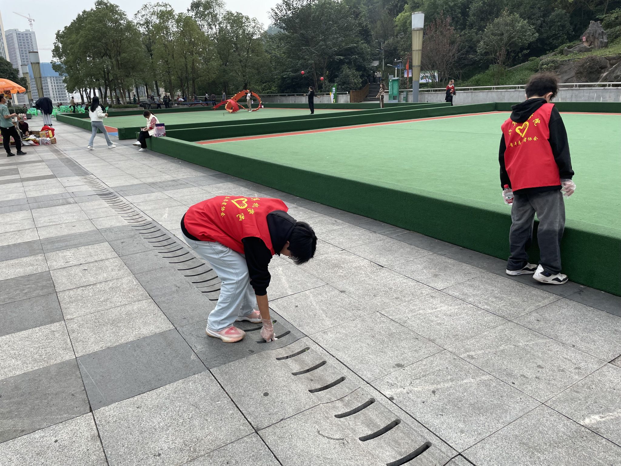 怀揣热忱,整装待发。风和日丽的周五下午,40名志愿者们分为四组来到九龙大道1、九龙大道2、九龙大道3和天星大道四个区域。明确各自任务后,志愿者们戴好手套、提起垃圾袋,随着辖区环卫工人的指引,迈开坚定的步伐,开始了今天的工作。散落的饮料瓶、不知名的烟头以及沾有泥土的烧烤签被小心的捡起,志愿者们一边将它们带回最终的归处,一边对有失文明的行人做出小心劝导。街道两旁,散步的人群微笑着望向志愿者,和三两同行的人讨论着什么。和煦的微风吹拂着脸颊,传达着志愿者们的一腔热血,浸染着清理过街道,焕然一新。