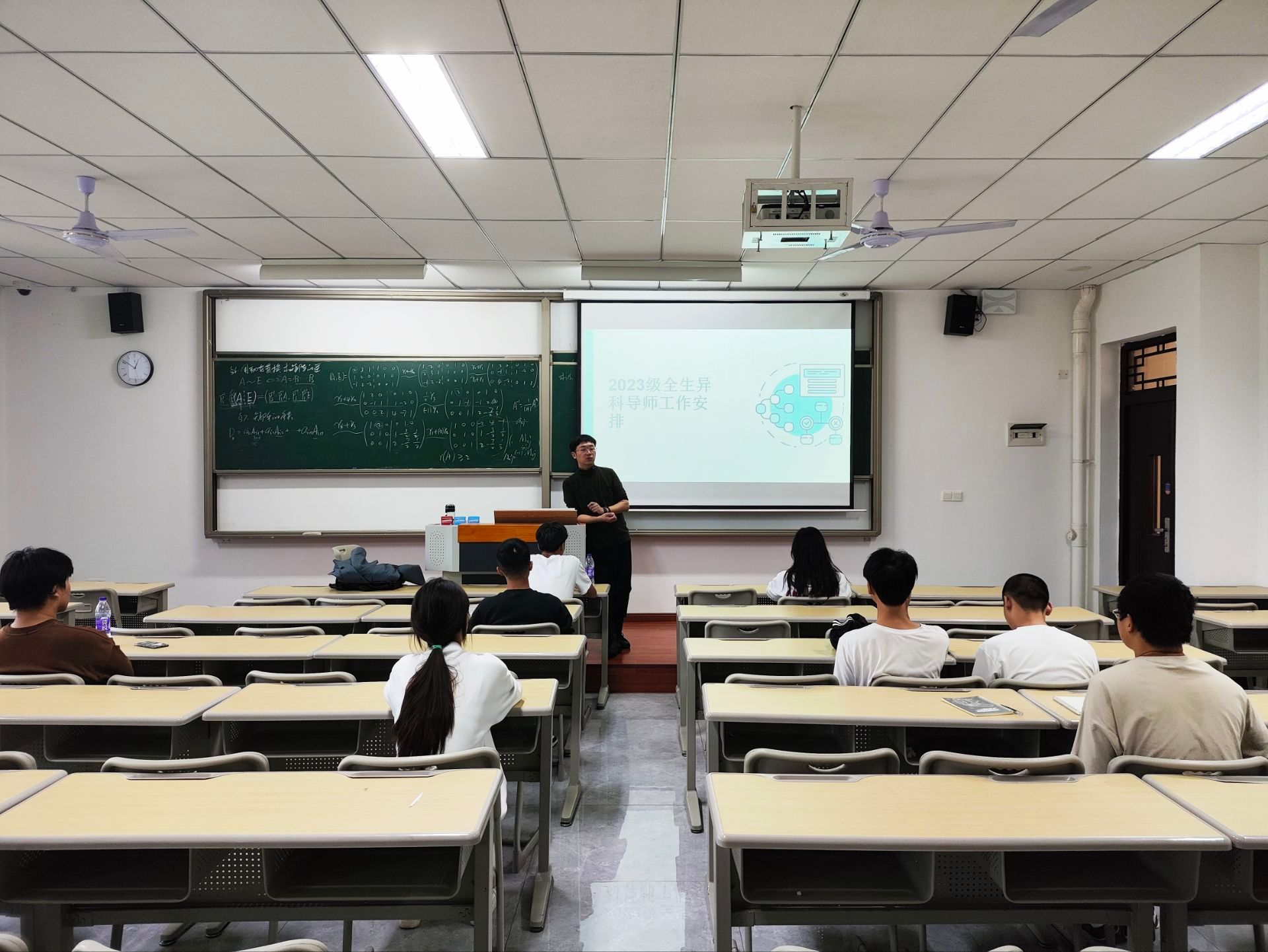 一年好景君须记,最是橙黄橘绿时。11月的秋,丹桂飘香,露似珍珠,在移通学院勤者楼102教室里,老师与同学们积极发言,讨论热烈,充满了热情和活力。2023年11月8日,2023级全生异科导师工作安排活动在张淇铭老师的带领下正式拉开帷幕。本次参与的同学为异科班内的两位班长和各位组长,本着共同进步,凝聚集体的原则,共同探讨如何在接下来的四年里发挥集体优势,拓宽就业面,提高自身素质,为未来的职业生涯打下坚实基础。
