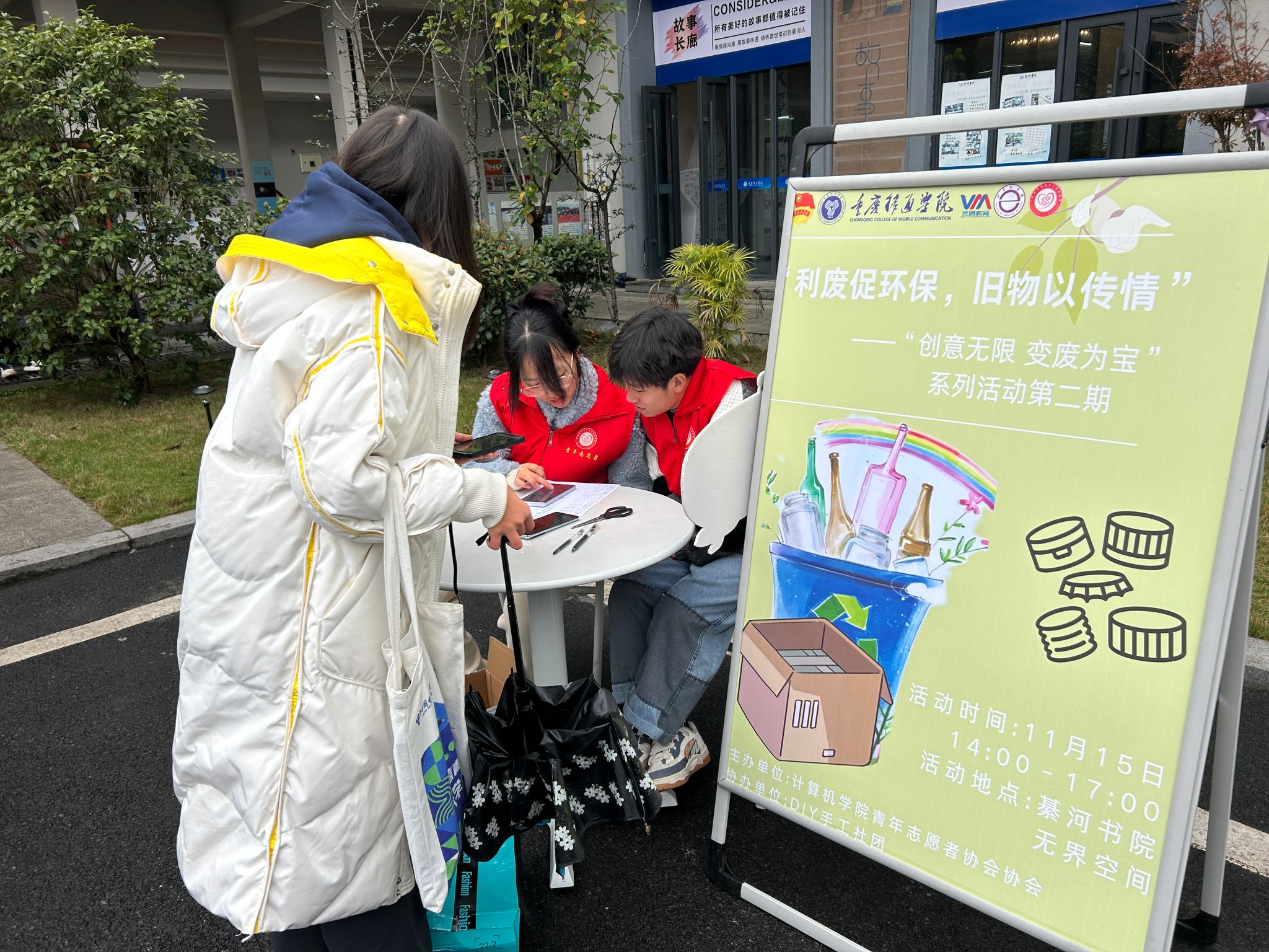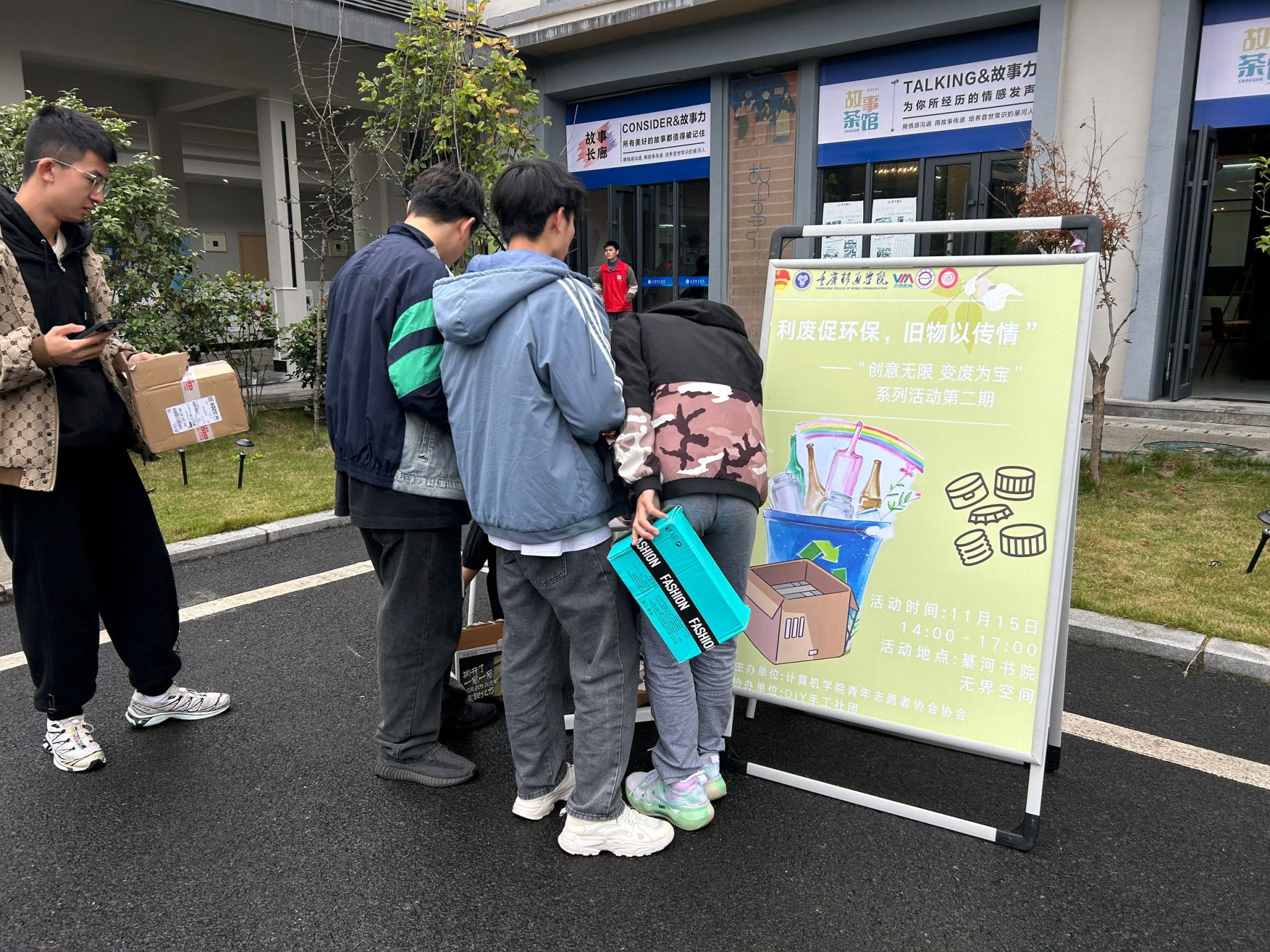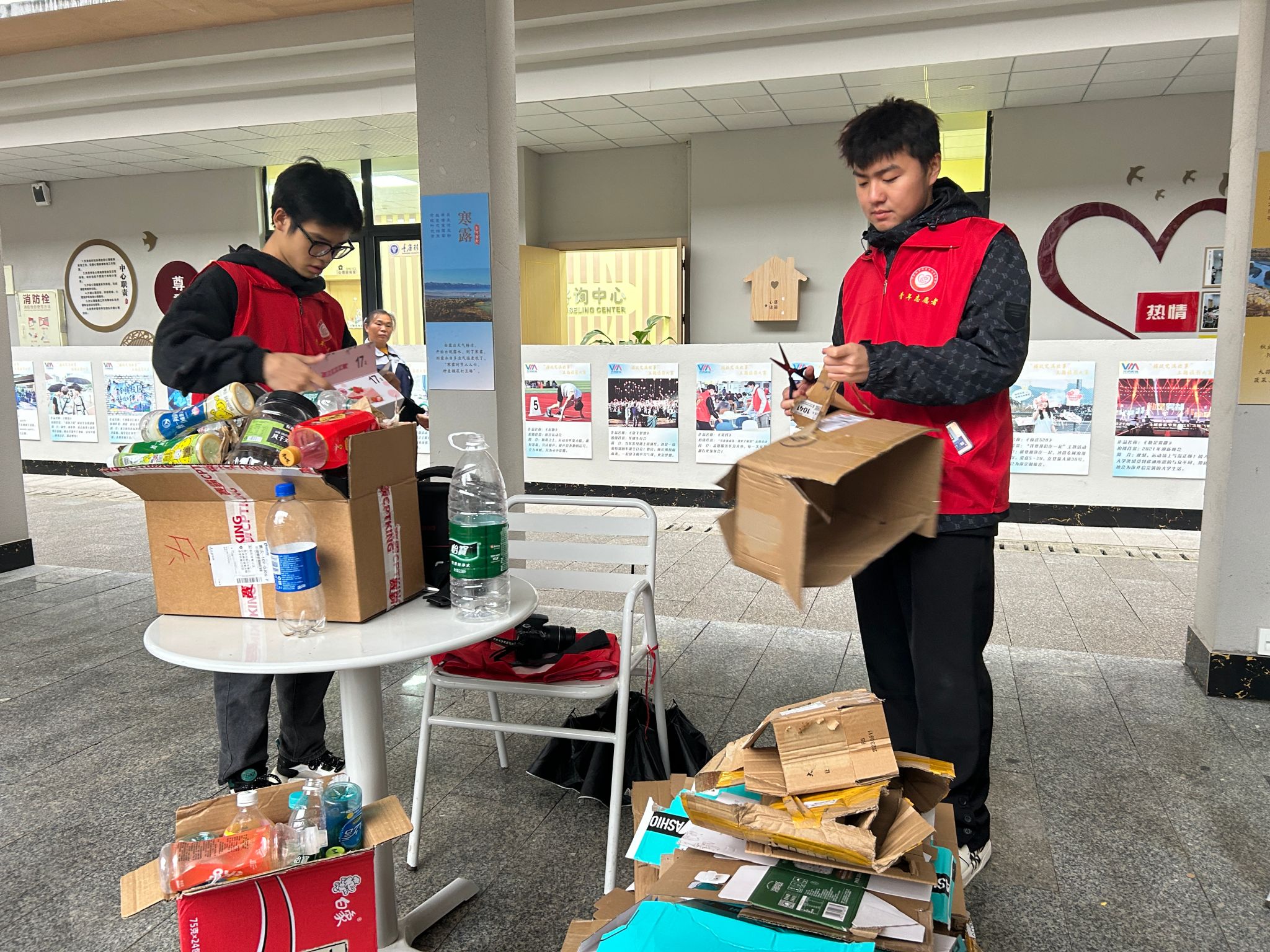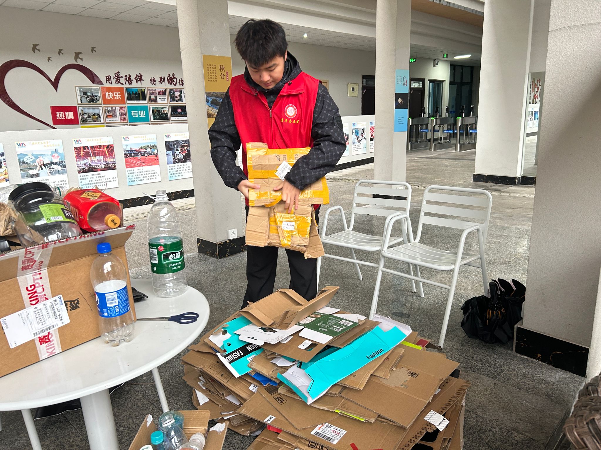 勤俭节约是中华民族的传统美德,千百年的传承更显得的这一品质的难能可贵。双11来临,随着快递量的增加,堆积纸盒子成了大学校园里随意丢弃的主要对象。为了促进校园文明的和谐发展,提倡当代青年学生崇尚勤劳节俭、变废为宝的精神。计算机学院青年志愿者协会于11月15日下午14:00-17:00,在綦河书院无界空间开展了“创意无限,变废为宝”系列活动第二期——“ 利废促环保,旧物以传情”为主题的线下废品回收活动。