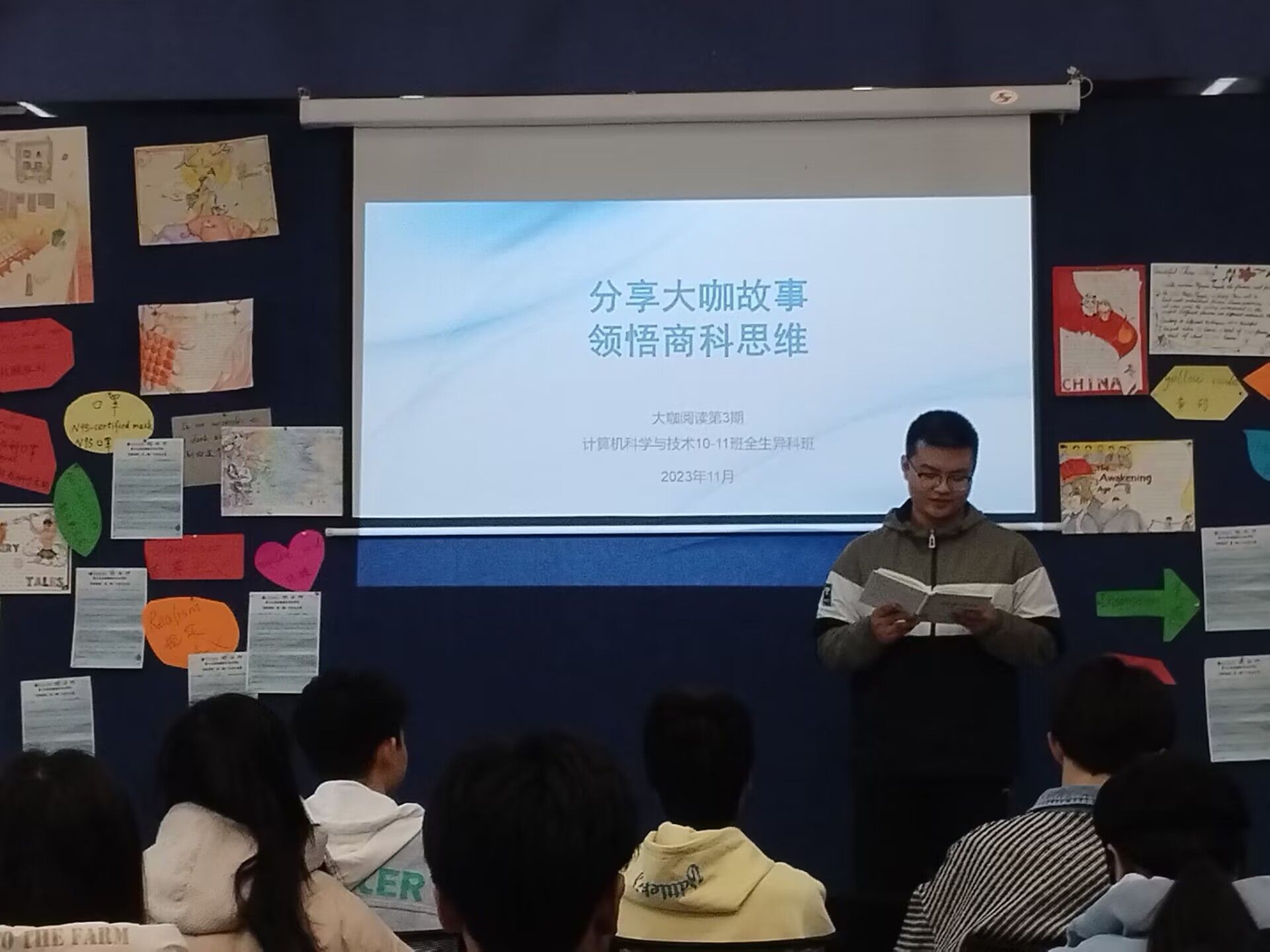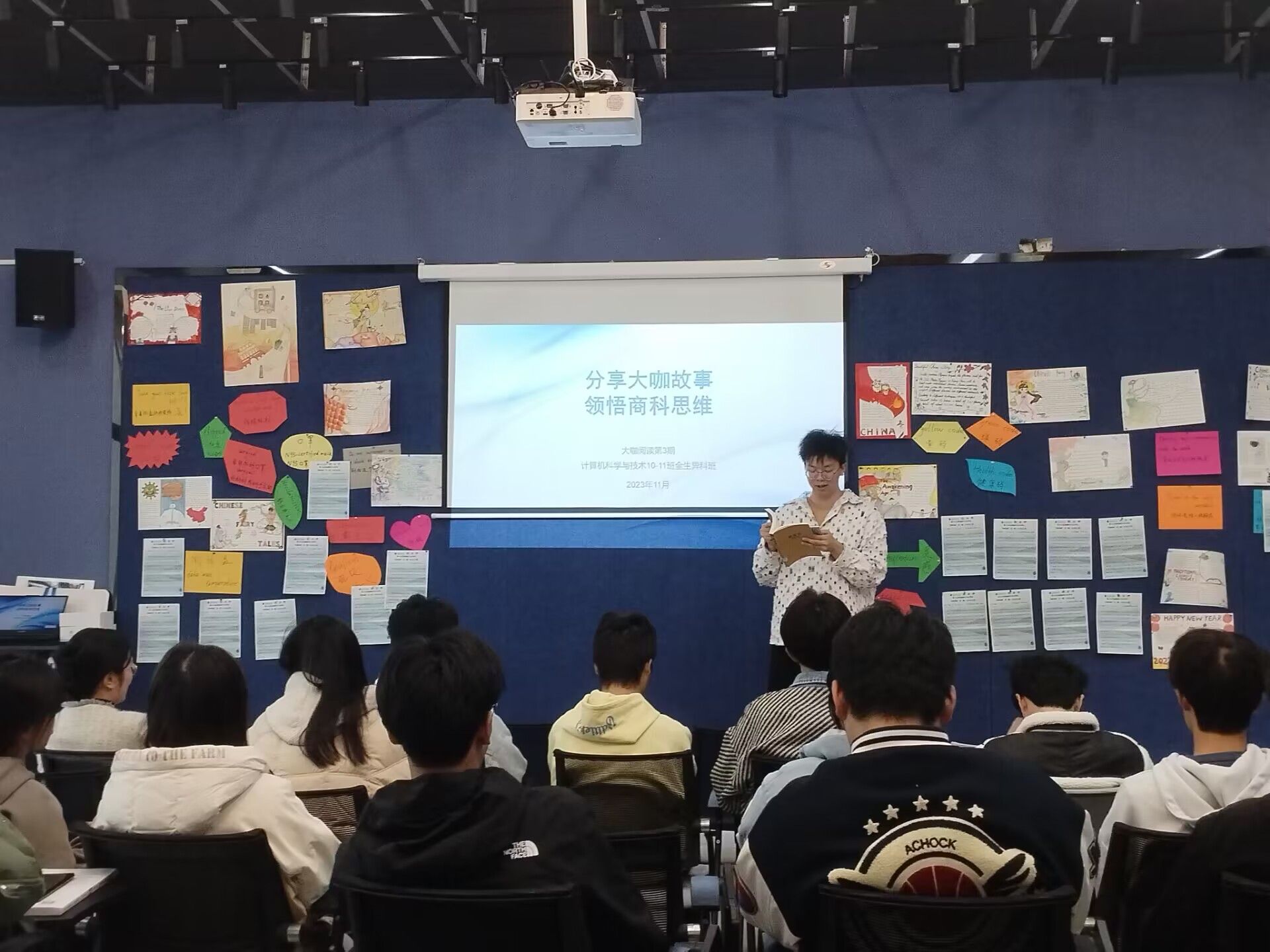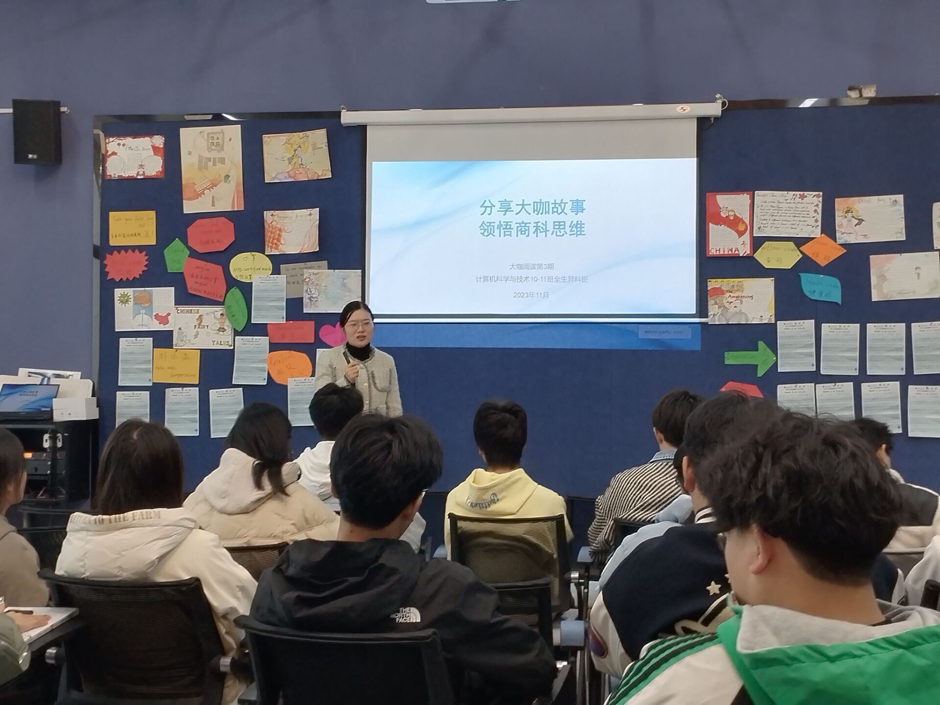 为积极响应我校“信息产业大咖传记阅读计划”,激发大学生阅读的热情,促进知识的交流和分享,2023年11月15日异科导师杨丽娟和2022级计算机科学与技术10-11班的部分同学在綦河书院二号楼两句演讲培训室开展异科导师大咖阅读交流会。