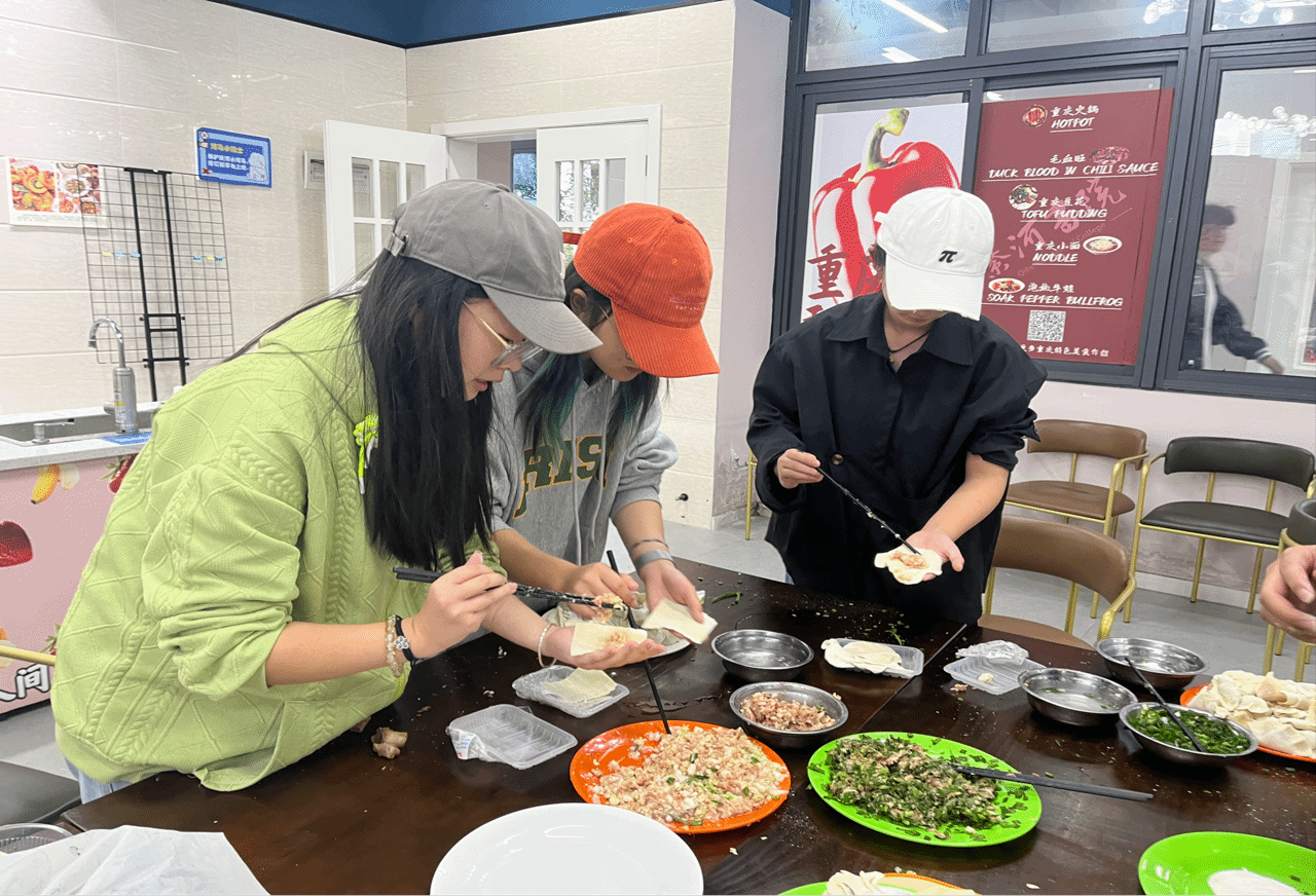 工作台上的各种馅料和饺子皮,让同学们可以尽享美味的同时,也感受到了家的温馨和团队的凝聚力。在制作饺子的过程中,同学们不仅传承了经典的饺子文化,也展示了他们的独特创意和心灵手巧。心形、花朵、小动物等各种形状的创意饺子,将活动推向了高潮,激发了同学们无尽的想象力和创造力。