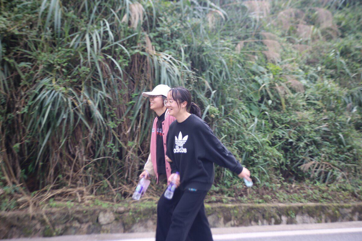 一路上,绿树、灰墙、红瓦、炊烟,农家门前啄食的小鸡,池塘中浮着的大白鹅,沿途风景如画,学员们边欣赏美景边互相交流,迈着轻松的步伐向山顶进发。树树皆幽色,山山唯落晖。徒步过程中,学员们精神抖擞,畅聊趣事,释放着学习的压力,一边欣赏着沿途的美丽山景,一边享受着徒步行走的快乐,时而谈笑风生,时而驻足拍照。