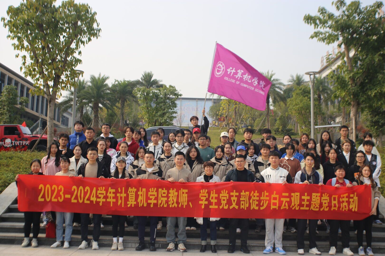 向美而行,以美育人。为弘扬爱国主义精神,加强青马工程实践活动,11月22日下午,计算机学院开展以“传承红色基因,砥砺青春芳华”为主题的教师、学生党支部徒步白云观主题党日活动暨青马工程初阶班户外体验课。