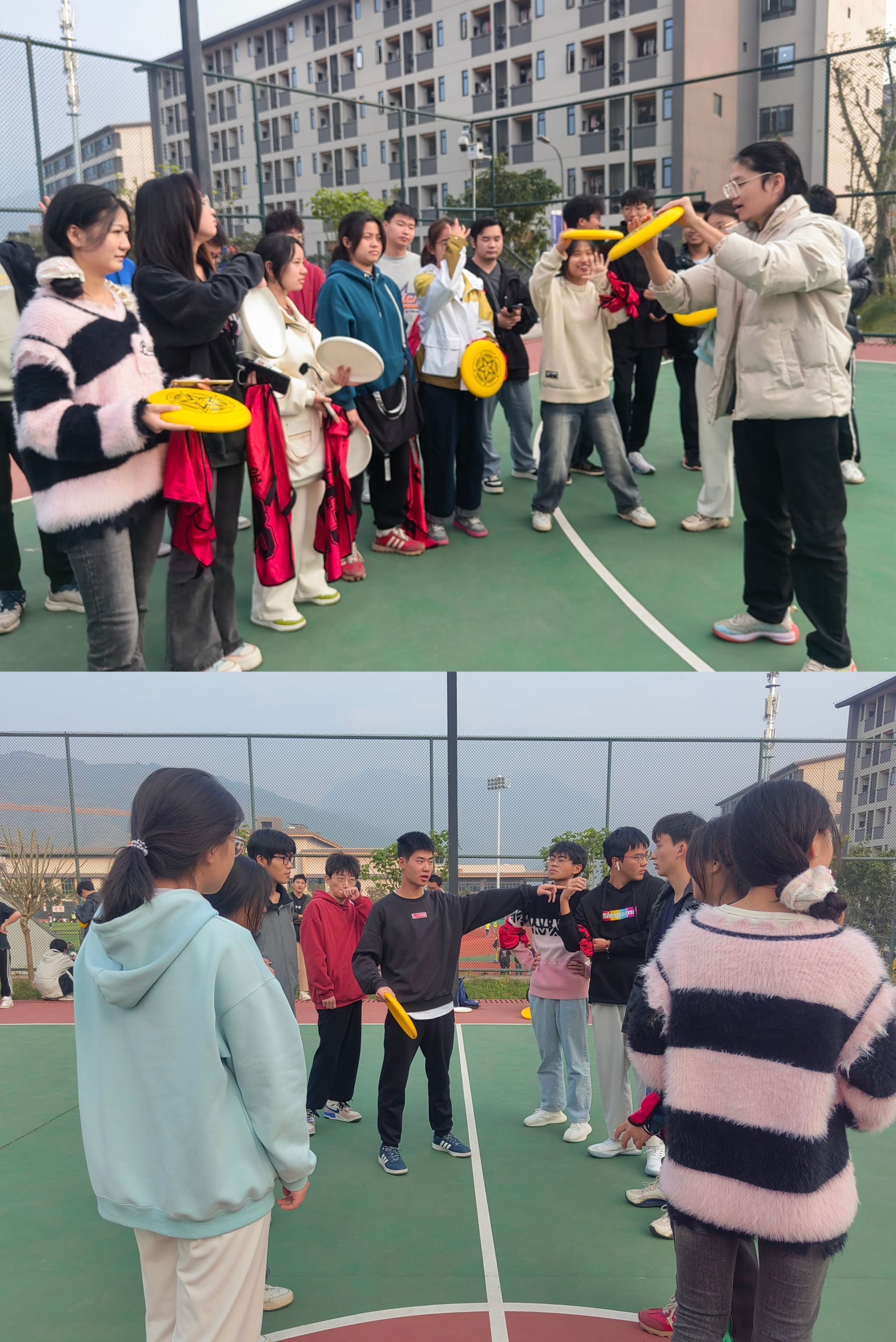 活动开始前,同学们由朱思琪老师分成几个小组,每个小组由一名经验丰富的飞盘教练带领。教练们仔细讲解了飞盘的正确投掷方法和技巧,以及比赛的规则和战术。同学们聚精会神地听讲,认真学习,迫不及待地想要展示自己的飞盘技能。