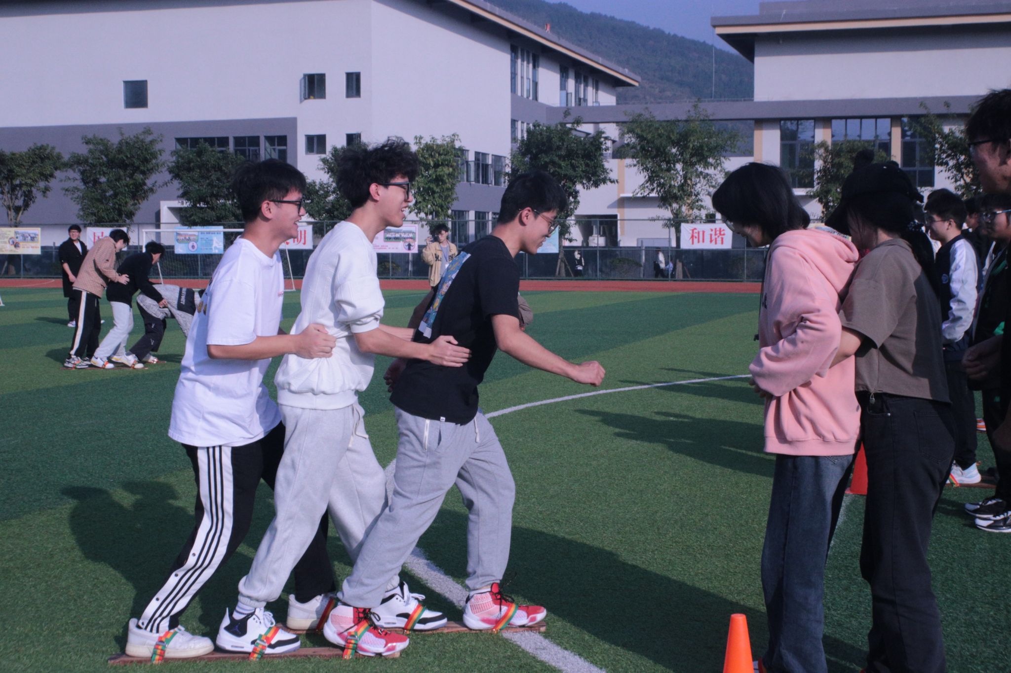 人间骄阳刚好,风过林梢,彼时我们正当年少。比赛开始,足球场上,一个个班级整齐划一进行检录参与,同学们高昂的热情点燃了现场的气氛,在以班级为单位的团体赛中,每个项目都是在考验同学们团队合作的活动精神,参与的同学尽力完成每一项项目,一个个身影在比赛中跃动着、穿梭着,现场热闹非凡,妙趣横生,同学们将青春的光芒发挥到了极致。