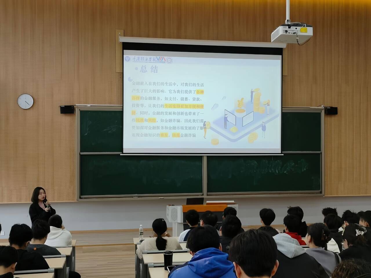 首先,主持人宣布本次宣讲正式开始。王伟孪老师以我们日常生活中的金融案例作为切入点阐述金融权益的重要性,让同学们明白当消费者的权益得到保护时,不仅可以增加对金融机构的信任,提高金融消费的积极性,而且能够促进金融市场的健康发展。同时,我们还需要加强对金融权益的宣传和教育,提高公众对其重要性的认识和重视程度。