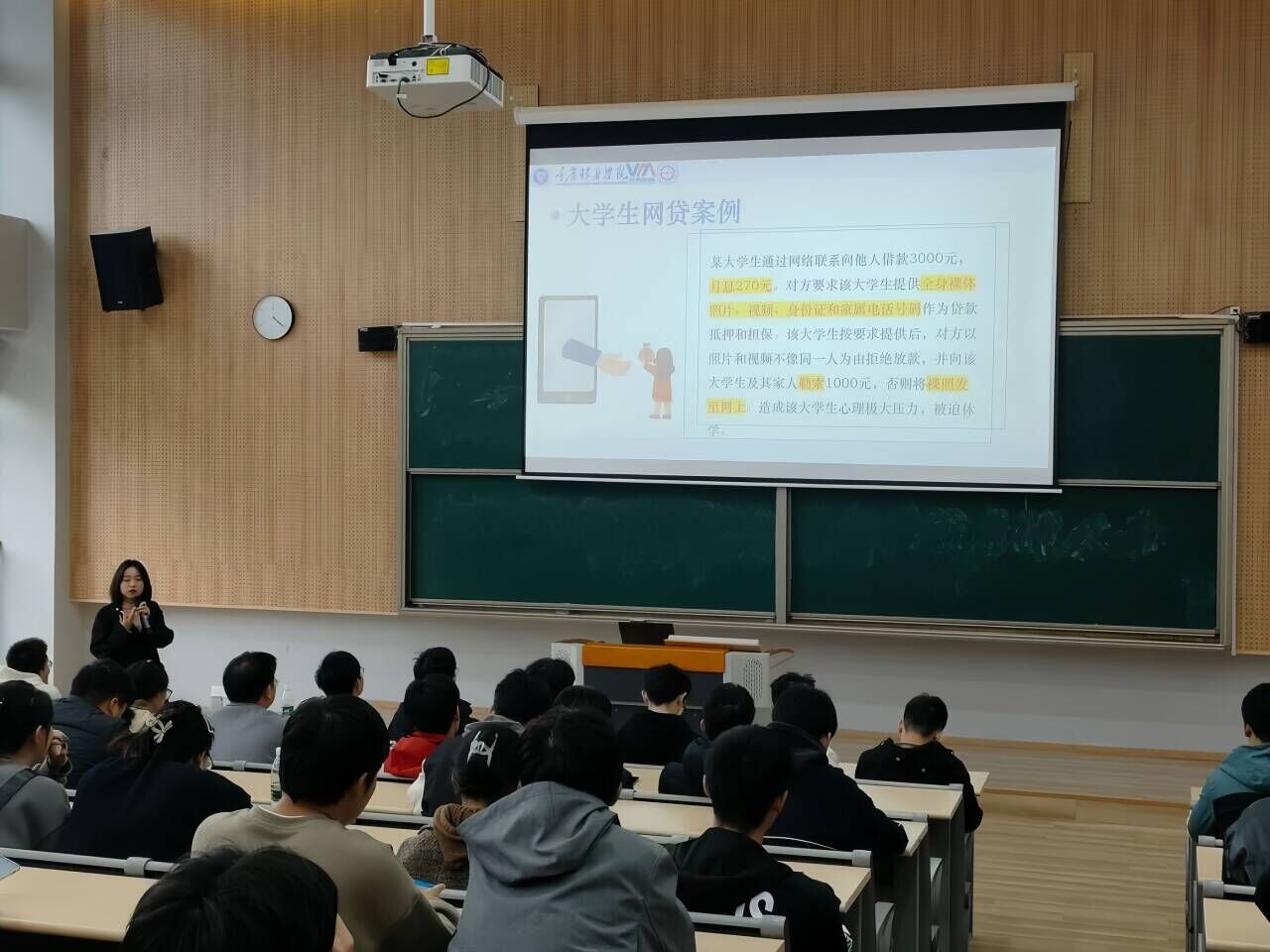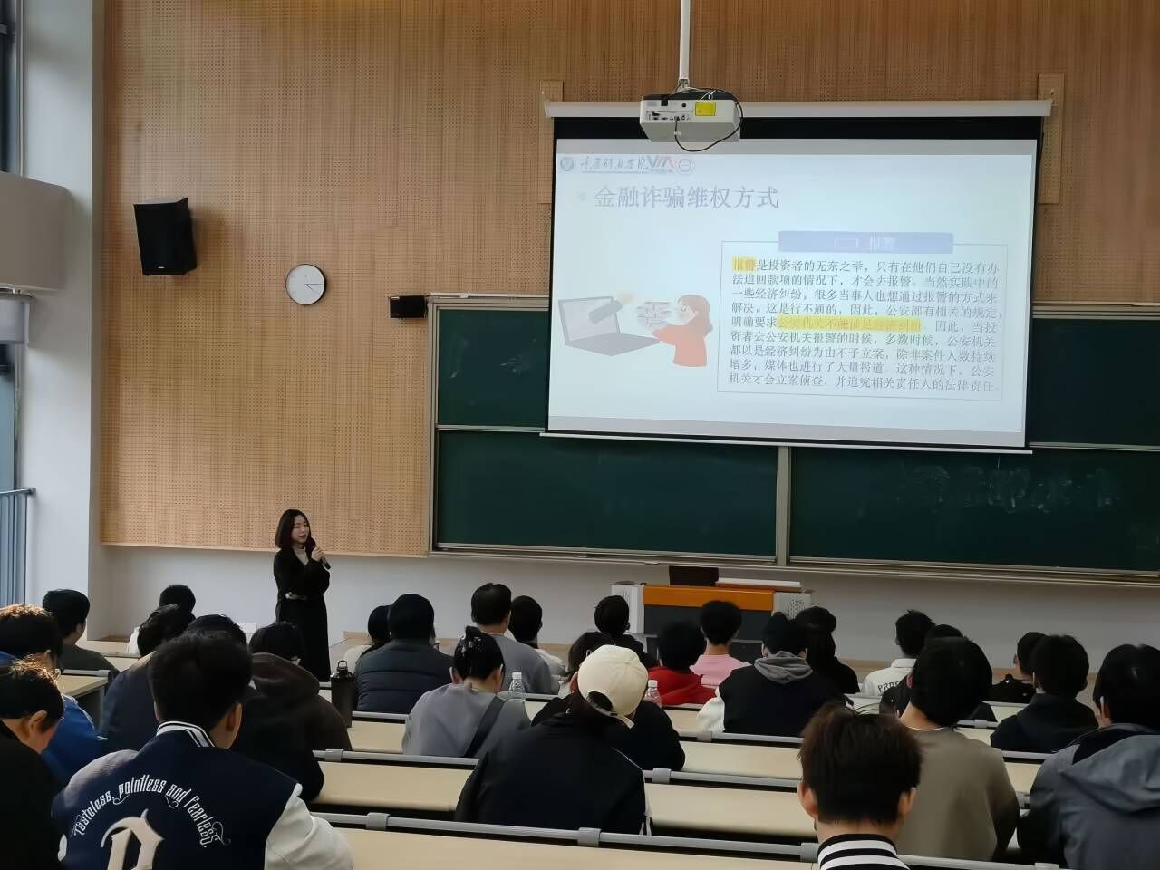 为了提高同学们的金融权益保护意识。计算机学院权益女生部于2023年11月24日在横山书院阶梯教室举办了“普及金融知识,防范金融诈骗”系列宣讲会。宣讲人王伟孪老师为同学们详细阐述了金融权益与人民之间的紧密联系及其对全民的重要性。