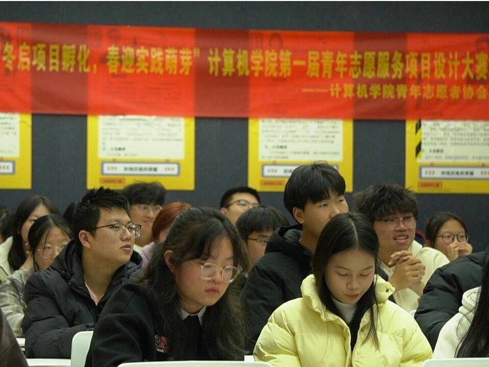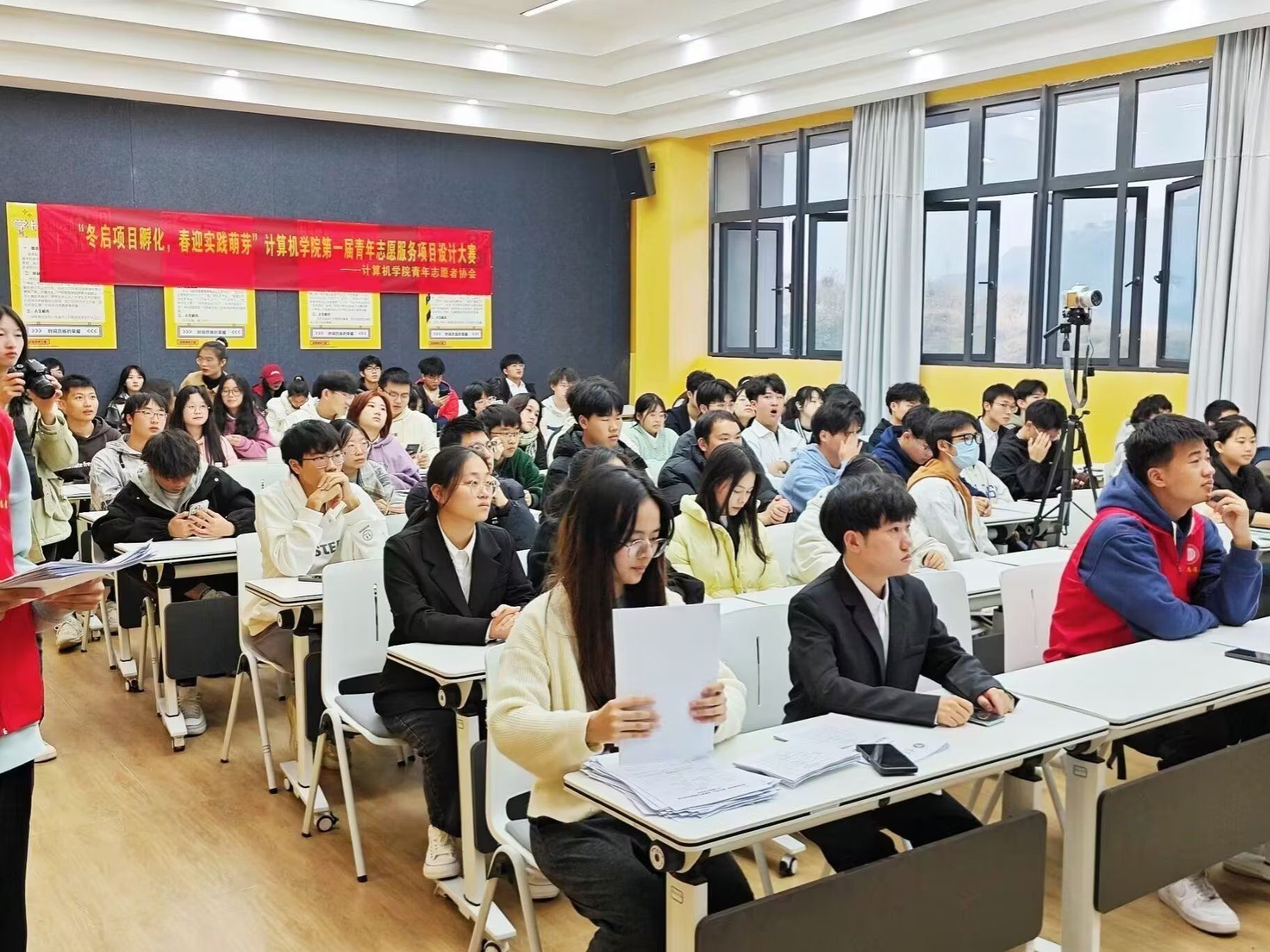 创新的火花绽放志愿的光芒,奉献的热情诠释公益的意义。将爱融入生活的点滴,将温暖传递于历史的长河,青春的亮色正是在这一次次志愿服务中绚烂出彩。为了弘扬“奉献、友爱、互助、进步”的志愿服务精神,进一步推进志愿创新理念,积极营造全校志愿服务的良好氛围。计算机学院于2023年11月29日下午于瀛溪书院回声报告厅举行青年志愿服务项目设计大赛。计算机学院学工副院长周俊、计算机学院团总支书记张雄、以及辅导员刘玉凤、黄渝真、王伟孪老师作为本次大赛的评委。