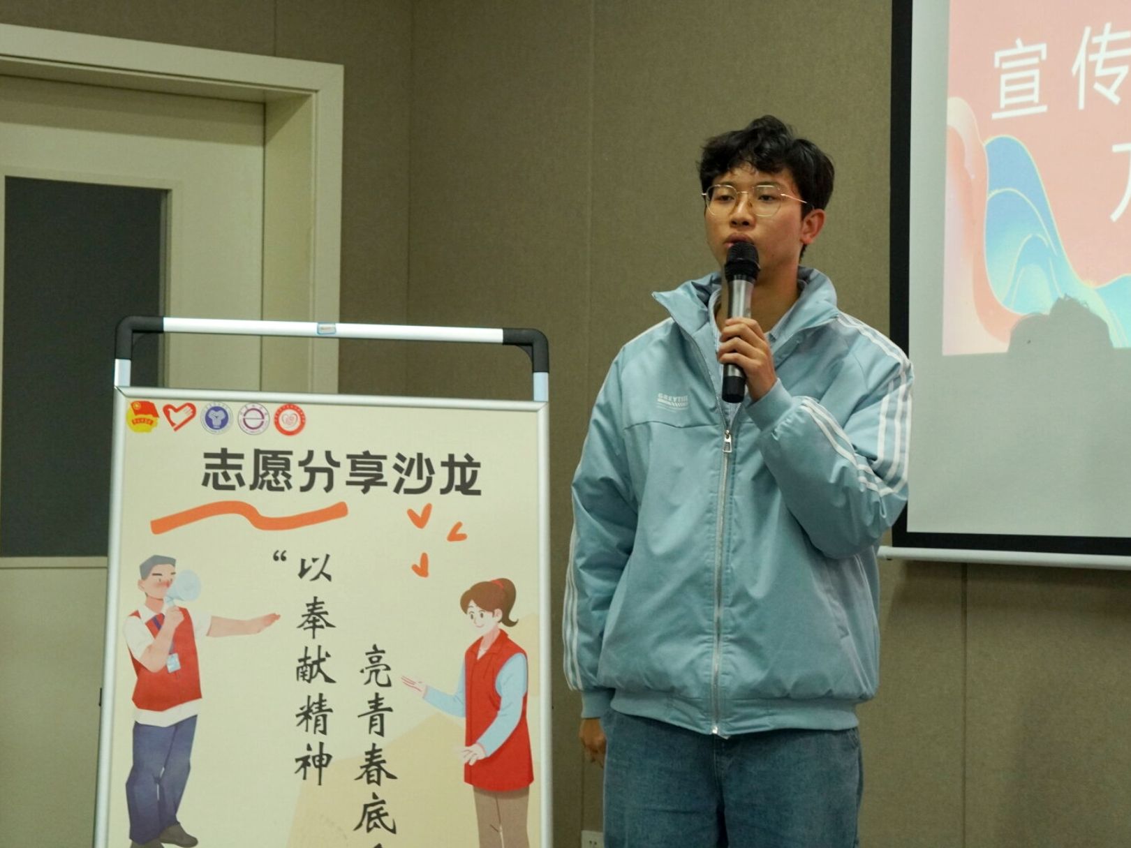 紧接着来到本次沙龙的重要环节——志愿感悟分享。志愿的意义究竟是什么?青协宣传推广部的部长万海分享了暑期“三下乡”的经历,回忆起那段有深远意义的时光。他激动地说到“‘三下乡’让我与志愿结识,让我由心抒发了对奉献自己,服务他人的想法,由此坚定我来到青协,为喜欢的事奋斗下去。”干事代表李静同学对部长的话表示认同,并感谢在青协的愿工作中对个人能力的提升,从而更好的帮助自己适应大学生活。