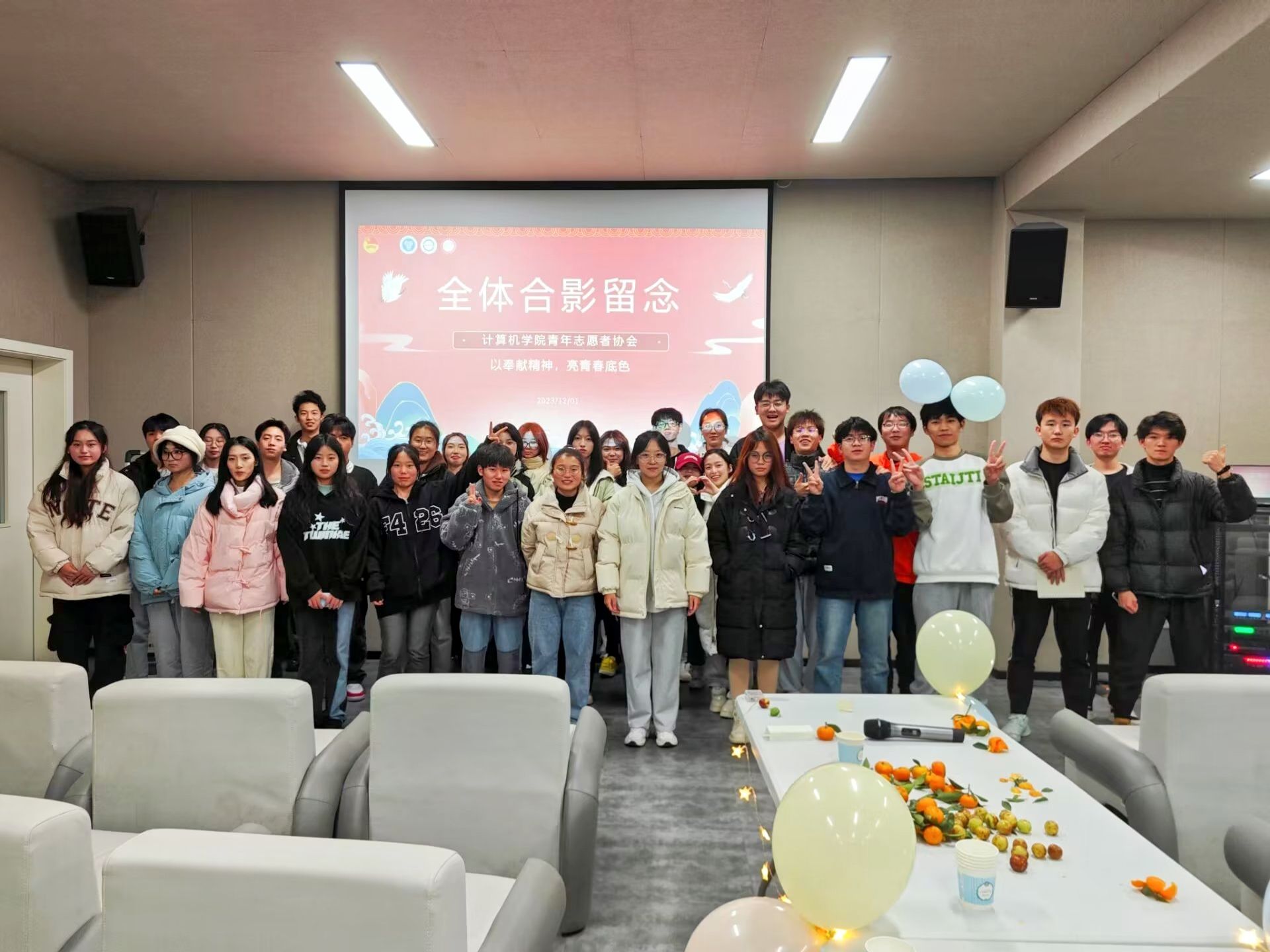 时光总短,意义非常。经过精彩的节目表演与游戏环节,主持人正式宣布,本次计算机学院志愿分享沙龙到此结束。到场成员合影留念,最后依依不舍的离开了潜台词影音室。本次志愿分享沙龙,有力地推动了志愿者们奉献精神的培养,提高了干部干事的社会责任感与自豪感。在“世界志愿者日”来临之际,让我们在奉献精神中感受到自己的成长和进步,为社会的进步和发展贡献自己的力量。实现自己的人生价值。