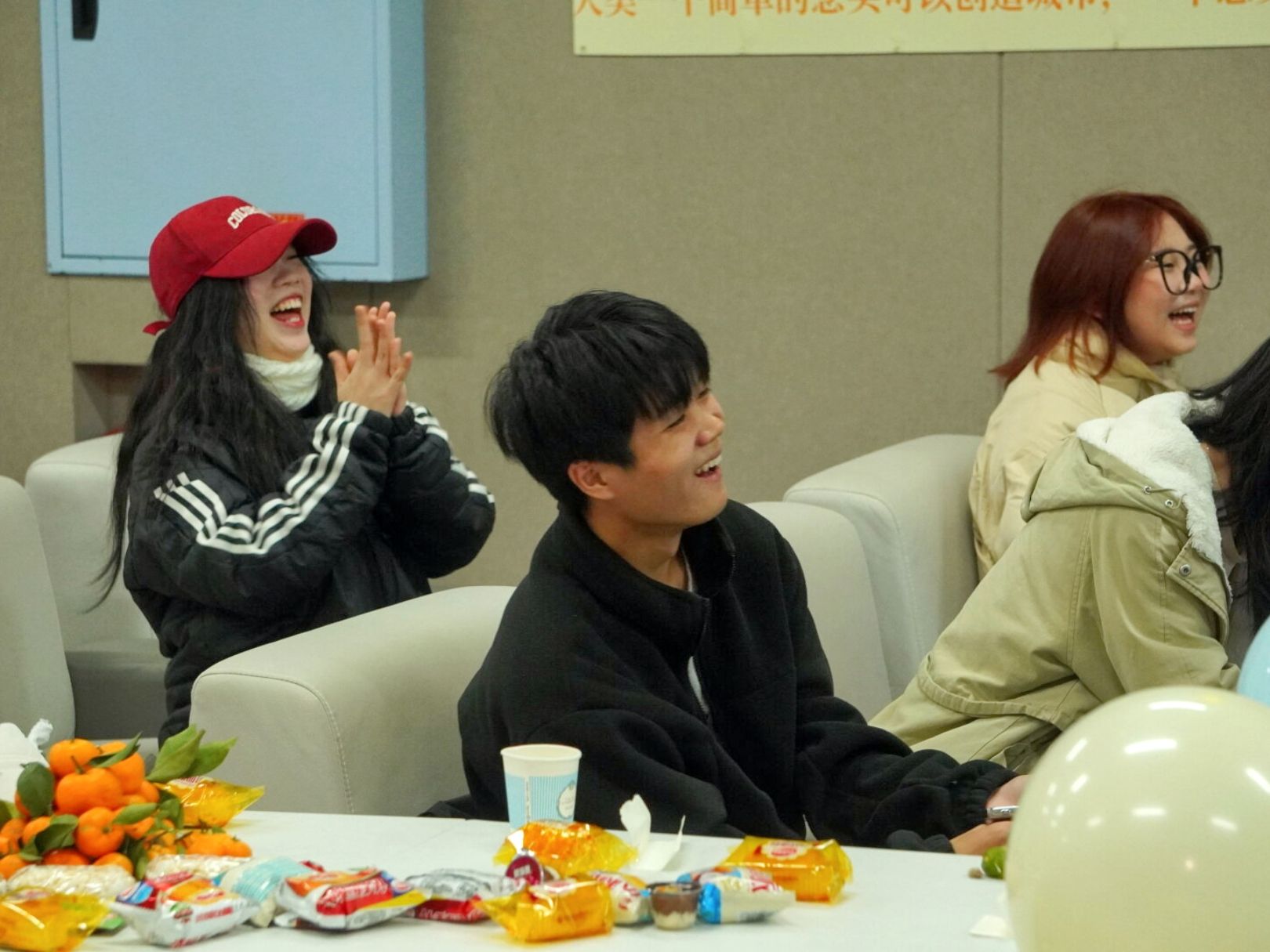 下午16:00,青协指导老师王伟孪以及各学院受邀主席、干部到场,主持人宣布计算机学院志愿分享沙龙正式开始。随着PPT的展开,“谁是卧底”的小游戏拉开了本次交流会的序幕。拘谨无措到进入游戏状态,影音室内爽朗的笑声将陌生的氛围变得活跃起来。台上的玩家用智慧避开嫌疑,台下的观众品着零食水果轻松惬意。随着卧底躲过最后一轮,主持人在众人的惊讶声中宣布卧底胜利,随即公布卧底身份,现场的观众对他们游戏中的精彩表现送上热烈的掌声。