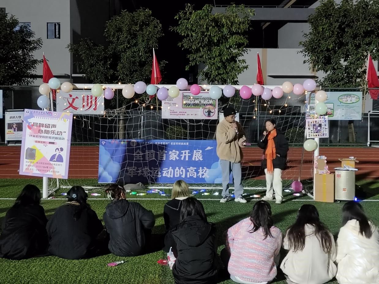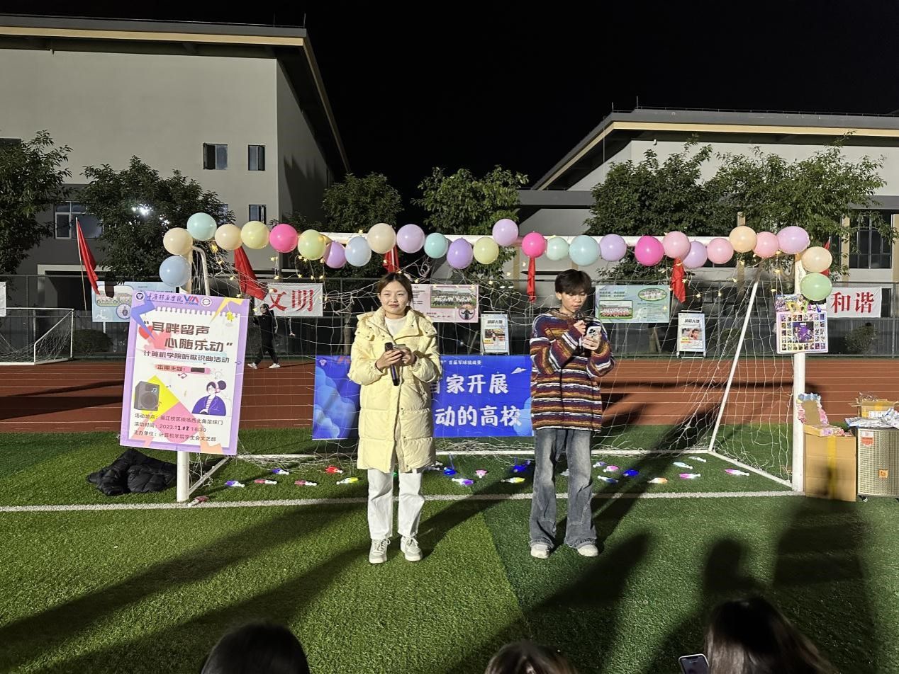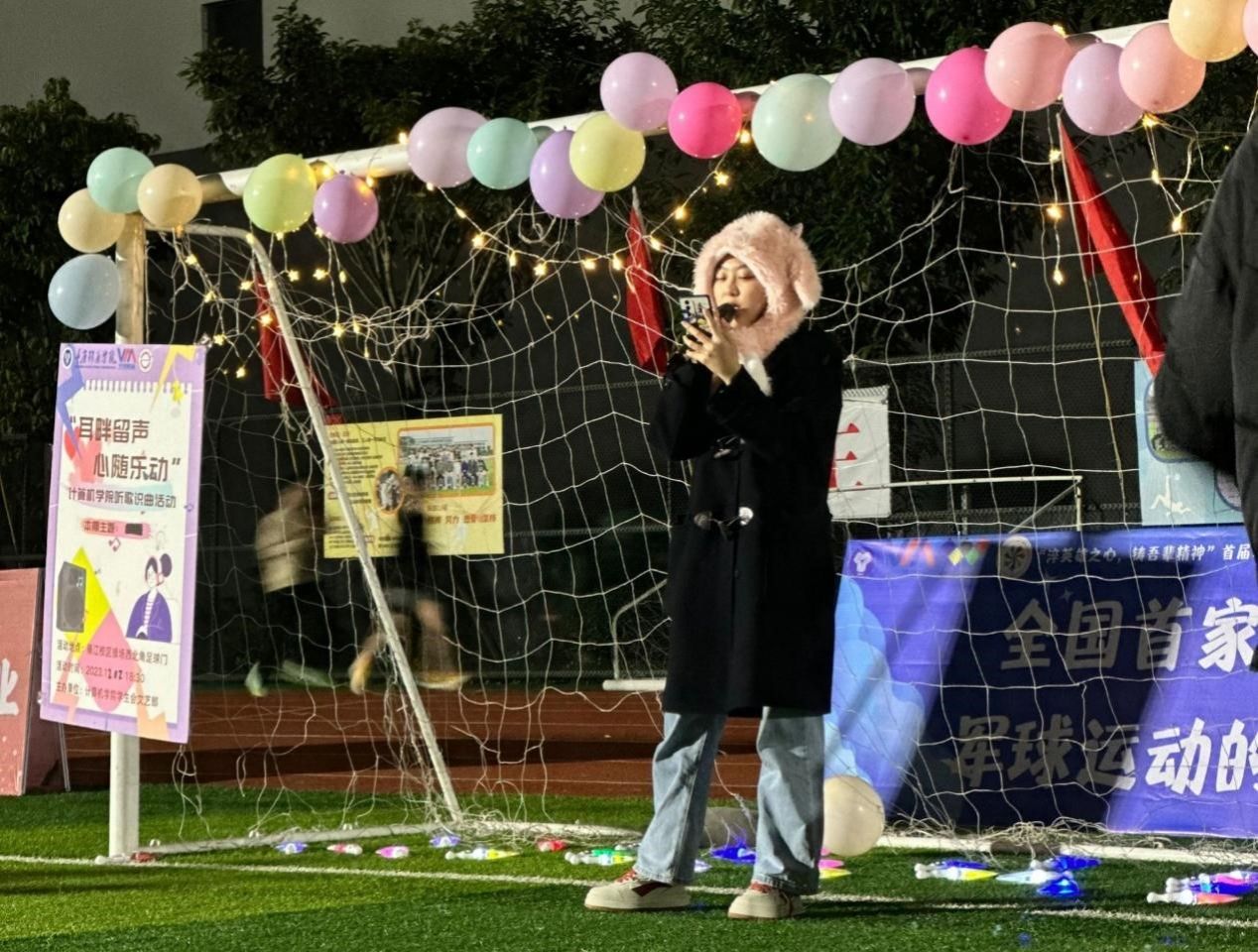 音聚你我,舞动青春。为营造活力和健康向上的校园氛围,充分展现新一代大学生的风采和精神面貌,丰富校园文化生活,2023年12月2日计算机学院学生会文艺部在校园足球场上举办了一场趣味盎然的“耳畔留声·心随乐动”计算机学院听歌识曲活动。此期活动主题为“影视金曲”,尽管天气严寒飘着毛毛细雨,但同学们的热情依然高涨,积极加入本期活动。