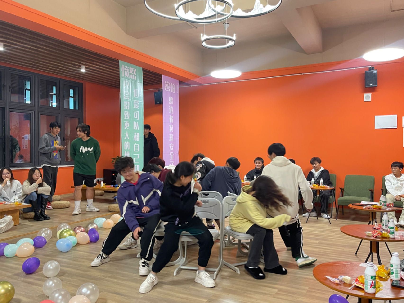 首先开展的便是“抢凳子”环节,为了抢到凳子,参赛同学更是使出浑身解数,大显身手,整个过程相当激动人心,尖叫声,欢呼声充满了整个房间。当比赛来到决赛局,场上只剩下三位同学,整个气氛也随之推向高潮。随着音乐的戛然而止,场上唯一的女生正好错过最佳时机,正当大家以为结局已经板上钉钉时,突然出现了戏剧性的一幕——计科16班的李翔同学主动把机会让给了这位女同学,成功引爆全场,掌声雷动。因有第一个游戏的预热,接下来的游戏也顺利进行,整个活动在同学们的欢声笑语中接近尾声。在此次活动中同学们展现出了大学生的青春活力,收获了快乐与温暖。