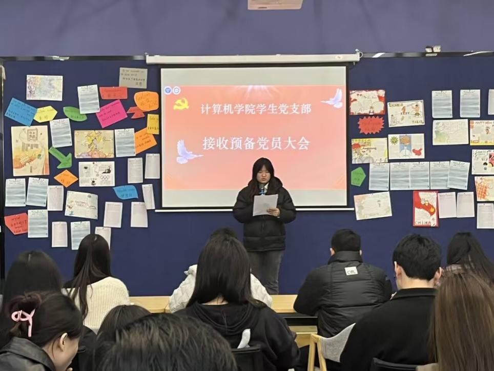为进一步加强支部党员队伍建设,切实做好党员发展工作,充实党员队伍后备力量,确保党员发展质量,增强党支部的凝聚力和战斗力,计算机学院学生支部于2023年12月14日在綦河两句演讲培训室召开本学期党员发展、转正大会,讨论魏文娟等3名同志发展问题以及王纤柔等5名同志按期转正事宜。支部全体党员同志参加会议,此次大会由杨桂华同志主持。