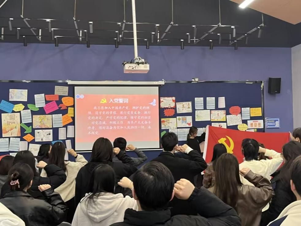 最后,全体党员进行了入党誓词宣誓,庄重而昂扬的声音回荡在整个会场。与此同时,合影留念成为了这一历史性时刻的见证,学院党员们以饱满的热情和自信面对相机,展现着自己对未来的坚定信念。