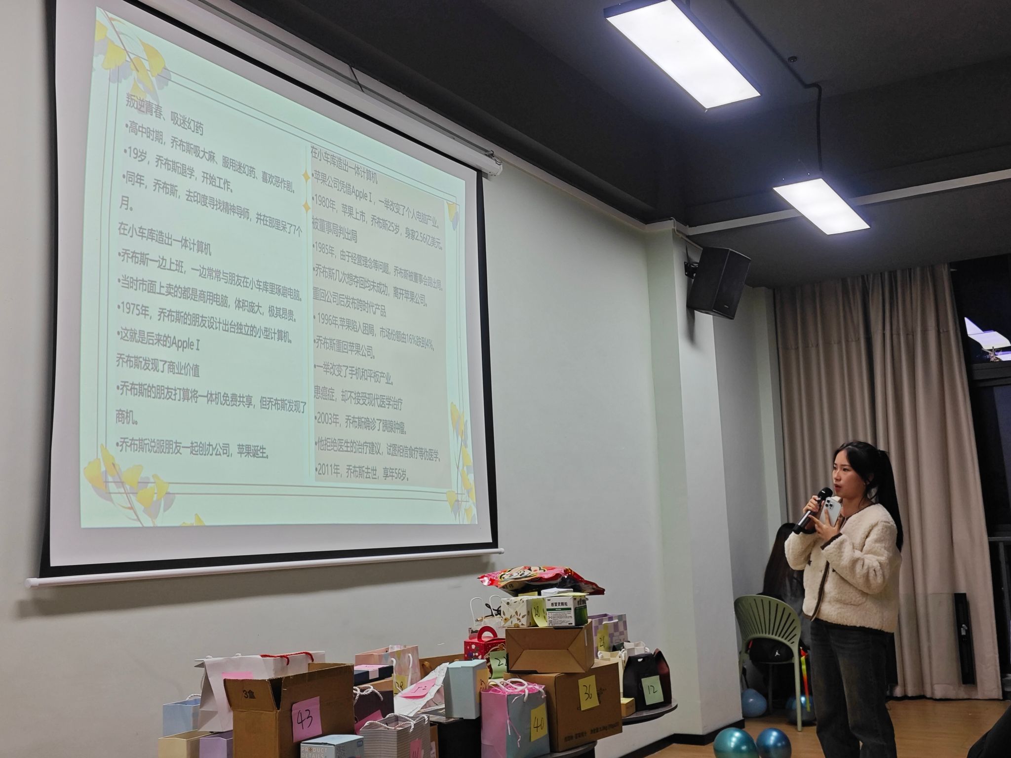 最后为大家分享的是2023级计算机科学与技术16班的黄思雨,她带来的是《改变世界的一种信仰:乔布斯和他的苹果神话》。从三个视频中,她带我们认识到了苹果公司发展的格局以及它的成功。一千个读者有一千个哈姆雷特,在本次的分享过程中,大家从不同的角度感受到不同的思考,了解到不同名人背后的故事。在分享讨论后,三位老师还给大家准备了精美的小礼品。