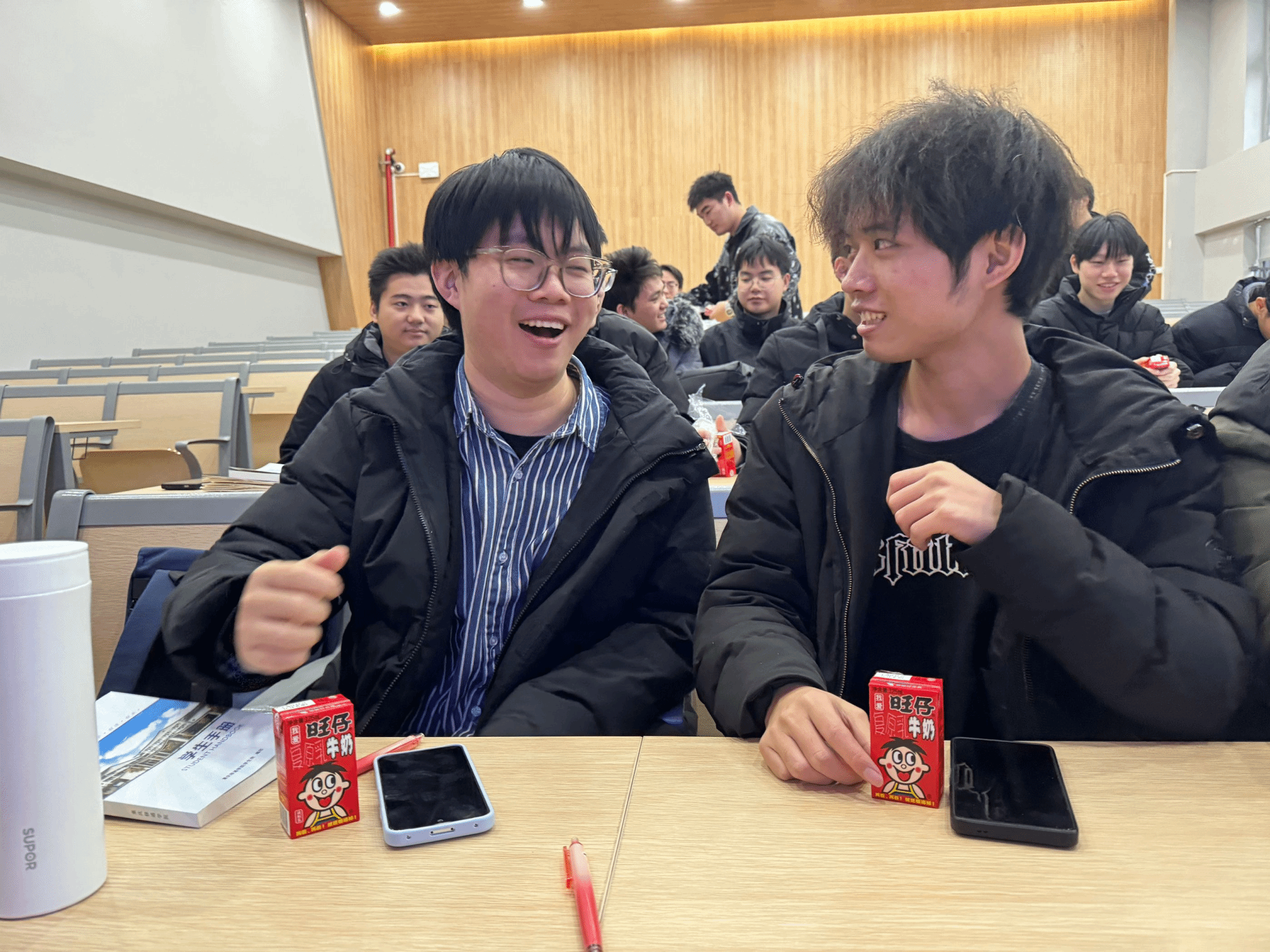 接着,任老师强调了学习的重要性,希望学生们不能沉迷于游戏,希望大家能够共同努力,对待期末考试要有准备、有信心。最后,班会给学生们分发了旺仔礼品作为奖励。这是任老师特意为学生们准备的惊喜礼物,旨在鼓励他们在学习和生活中的积极表现。学生们纷纷表示感谢,并表示会将这份礼物视为自己努力学习的动力。