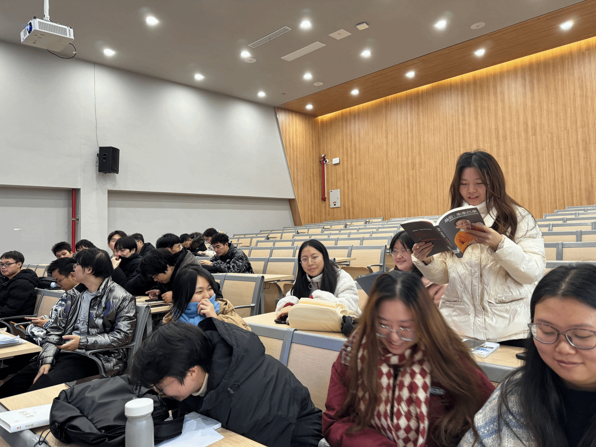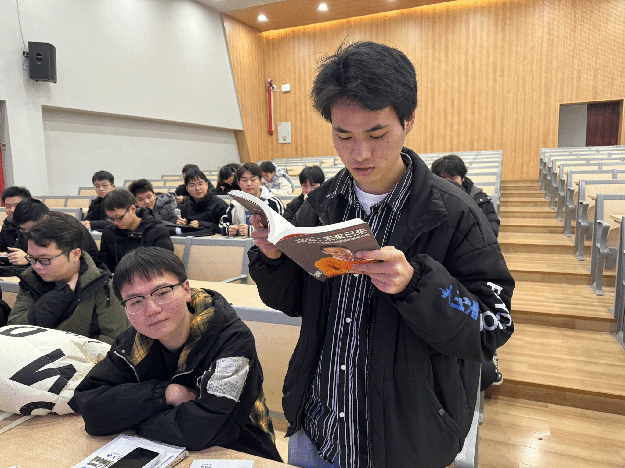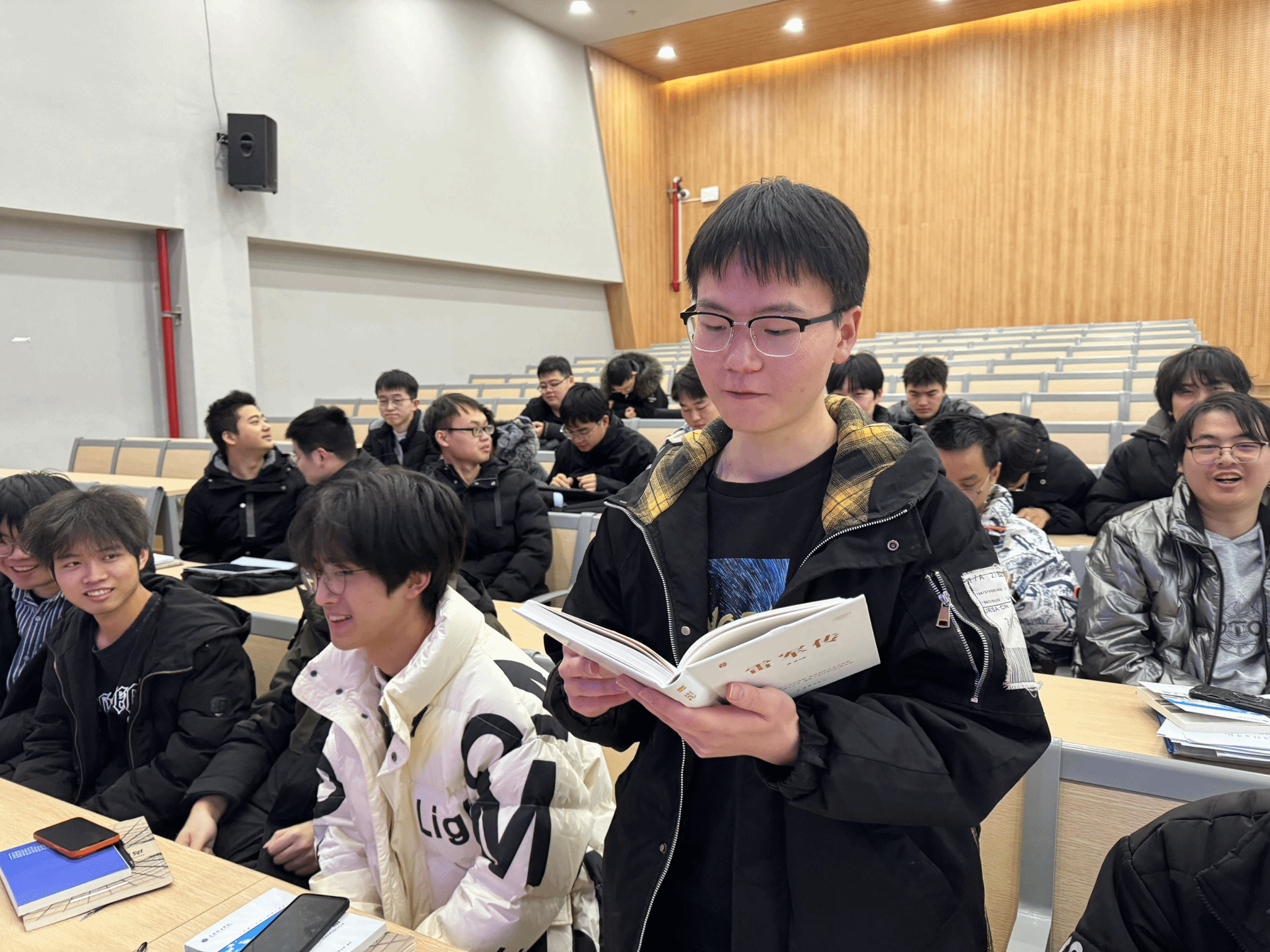 为了让学生们更深入地了解这两位大咖,异科班班长苦友吉、詹勇等四位同学站起来朗读雷军传和马云传的部分内容。在朗读过程中,他们声情并茂地介绍了雷军和马云在创业过程中的艰辛和成功背后的付出。