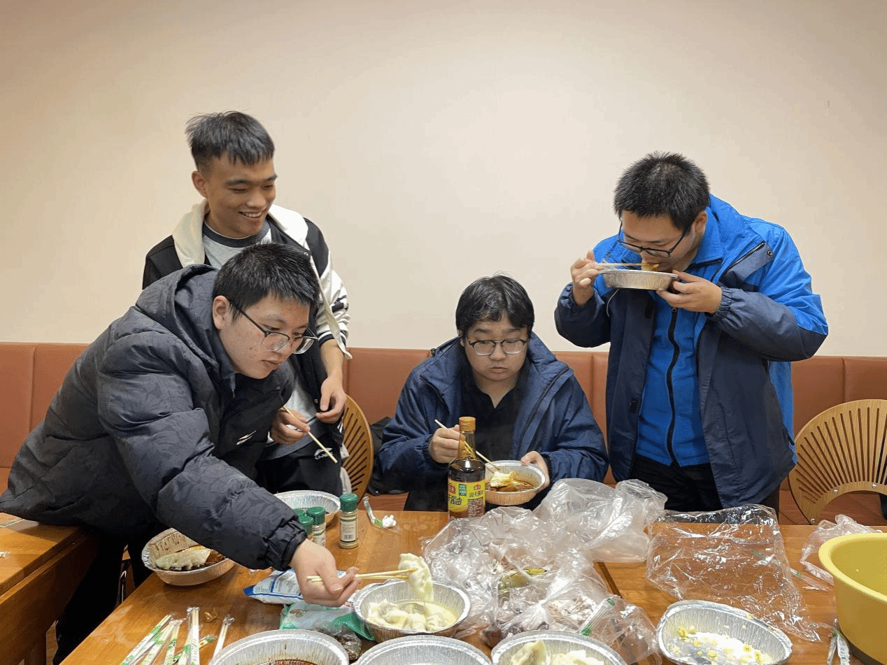 小雪初到,寒意更胜。煮上一锅热气腾腾的饺子,就成了冬日不可或缺的仪式感。为弘扬中华传统文化,丰富学生课余文化生活,营造和谐愉悦、团结协作的异科班级氛围。12月6日,异科导师彭昇老师带领2022级计算机科学与技术1、2班同学们在玉棠书院半糖煮艺烘焙坊举办了一场别开生面的包饺子活动。整个活动富有创意且意义深远,不仅让同学们在忙碌的学习生活中感受到了家的温馨,更让同学们在期末的忙碌学习生活中找到乐趣。