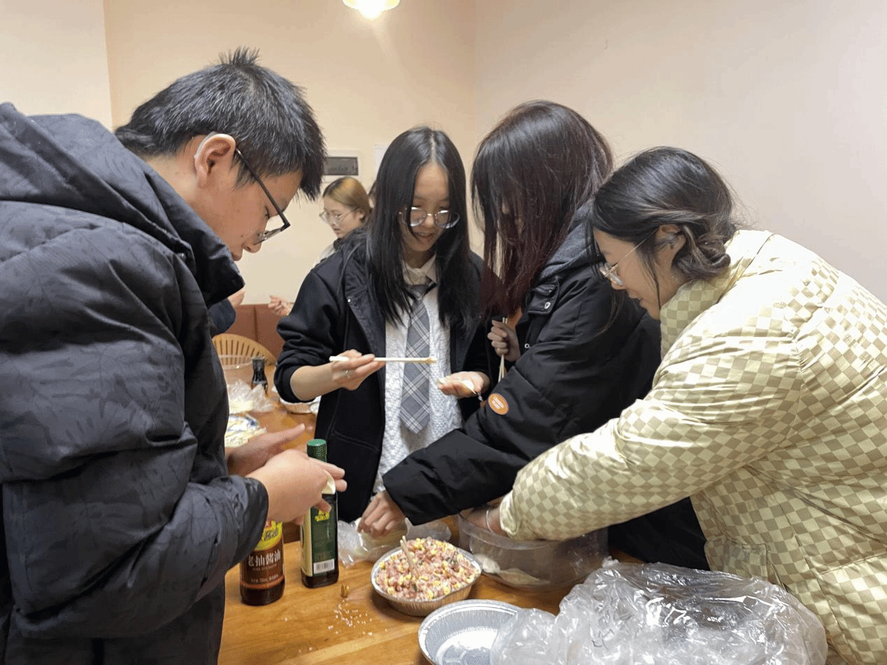 活动开始前,同学们精心准备,分工细作,提前对原料进行了加工,精心调制了饺子馅。每位同学各司其职,积极投入到制作过程中,大家忙得不亦乐乎。在活动进行过程中,熟练掌握包饺子技巧的同学热情的帮助稍显生疏的同学,营造了一份独属于异科同学们之间的奇妙的充满凝聚力的别样氛围。同学们围在桌子边一起包饺子、唠家常,现场热闹非凡。大家互相切磋着手艺,时不时地交流着自己做饺子的“独家秘籍”。温馨的氛围让同学们在严寒的冬日感受家的温暖,传递着同窗温情。