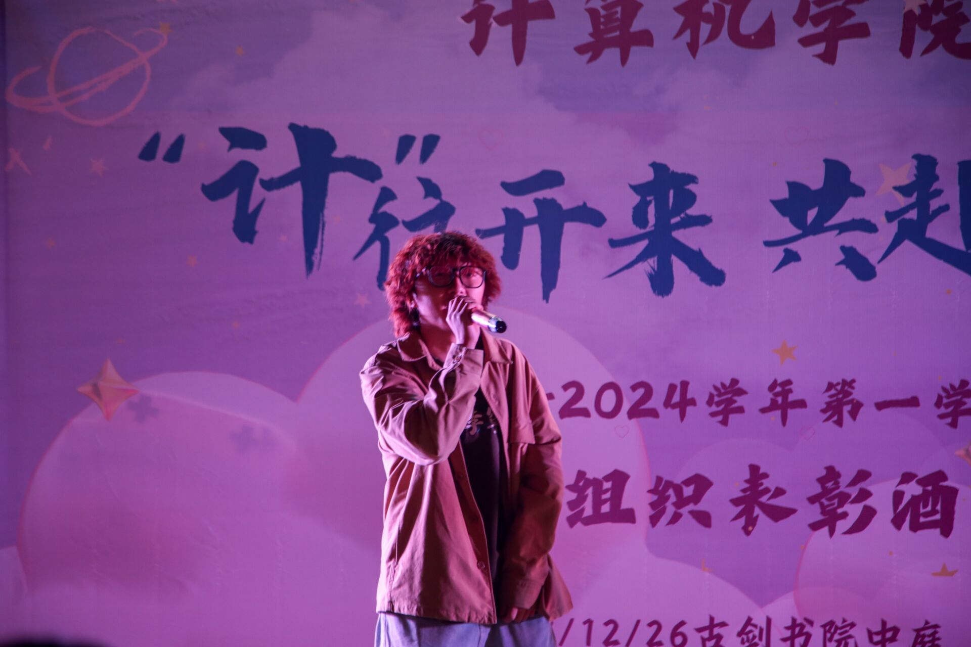 在圆月的映衬下,古剑中庭被灿烂的灯光所笼罩。此时,由计算机学院蒋沁松、戚鸿福两位同学带来原创歌曲《大ai计算机》的歌声响彻整个中庭,旋律激昂,歌词深情。来自计算机学院的学生们,用自己的真挚情感诠释着这首歌曲。他们不仅是在唱给在场的人听,更是在唱给自己,唱出对计算机的热爱,对未来的憧憬。每一个音符、每一句歌词都饱含着学生们内心的真挚情感。他们用自己的方式,表达着对计算机的独特理解和对未来的无限期待。这首歌曲不仅仅代表着在场的每一个人,更是代表着整个计算机学院中每一个学生。他们用自己的才华和努力,共同书写着计算机学院的辉煌篇章。随着歌声的回荡,人们仿佛能够感受到学生们内心的激情和追求。在这个特别的夜晚,他们用音乐传递着力量和希望,让每个人都为之动容。