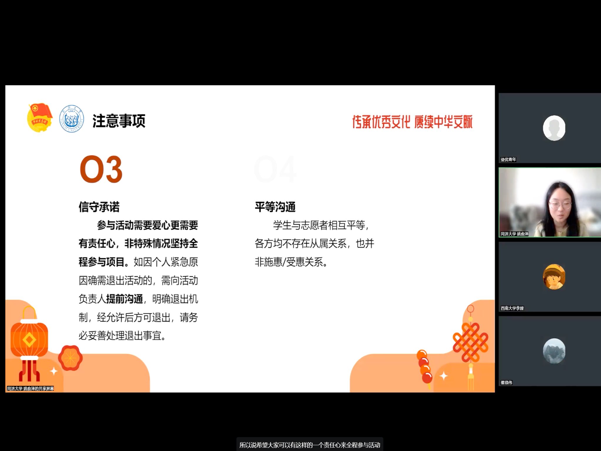 紧接着,主持人开始梳理“一起云支教”第8季活动的具体执行培训。培训内容涵盖了从如何与中小学生建立有效沟通,到如何选择合适的教学内容和方法等多个方面,志愿者们深感自己在教育理念和教学方法上都有了显著的提升。