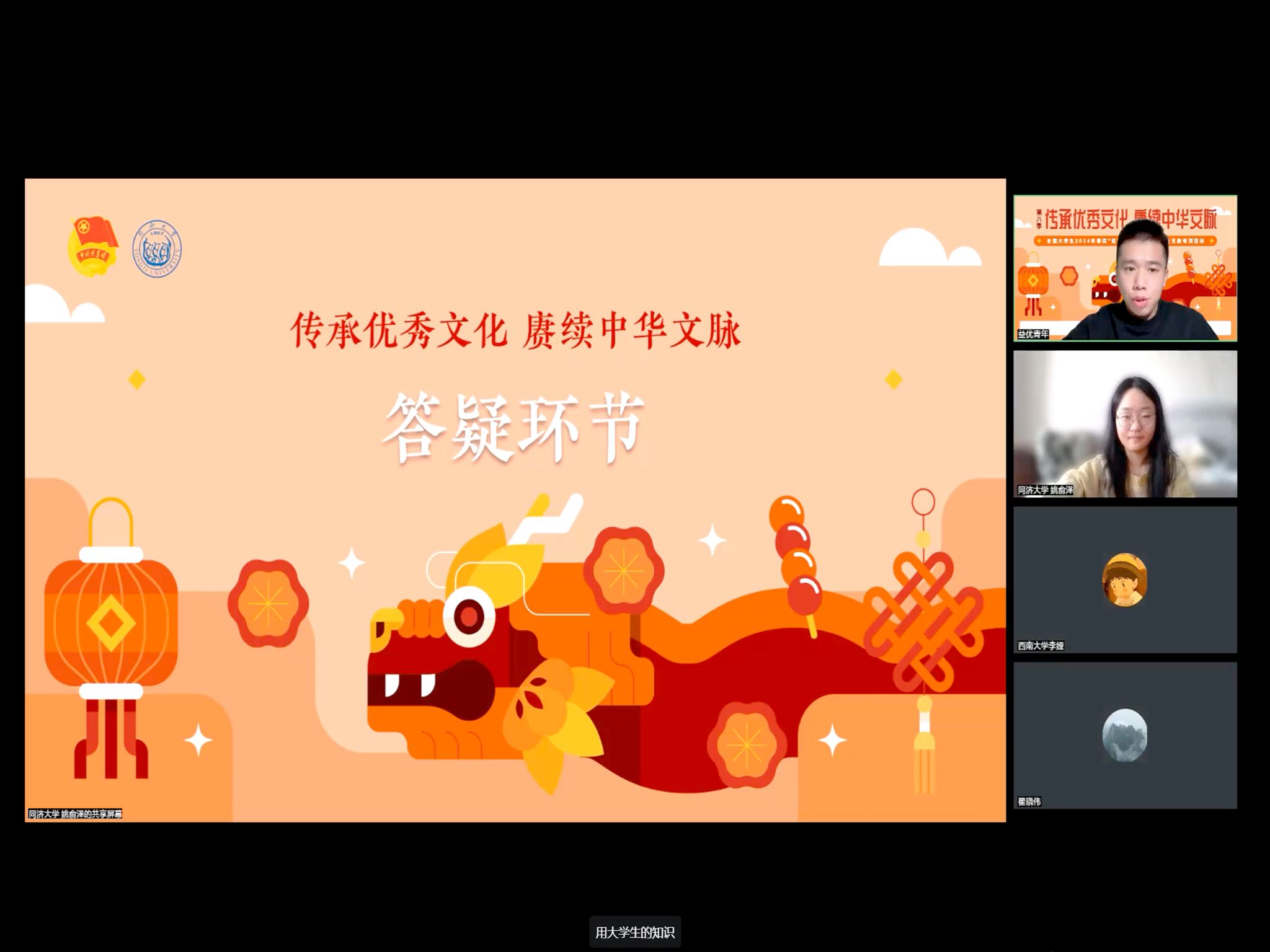 利一日之一二,得终身之受益。“2024年寒假“一起云支教”第八季——“传承优秀文化,赓续中华文脉”启动仪式暨志愿者培训圆满举行,标志着活动正式拉开序幕。志愿者们相信,在大学生志愿者和中小学生的齐心协力下,就一定能够为更多的孩子带去知识和希望,共创祖国美好明天。