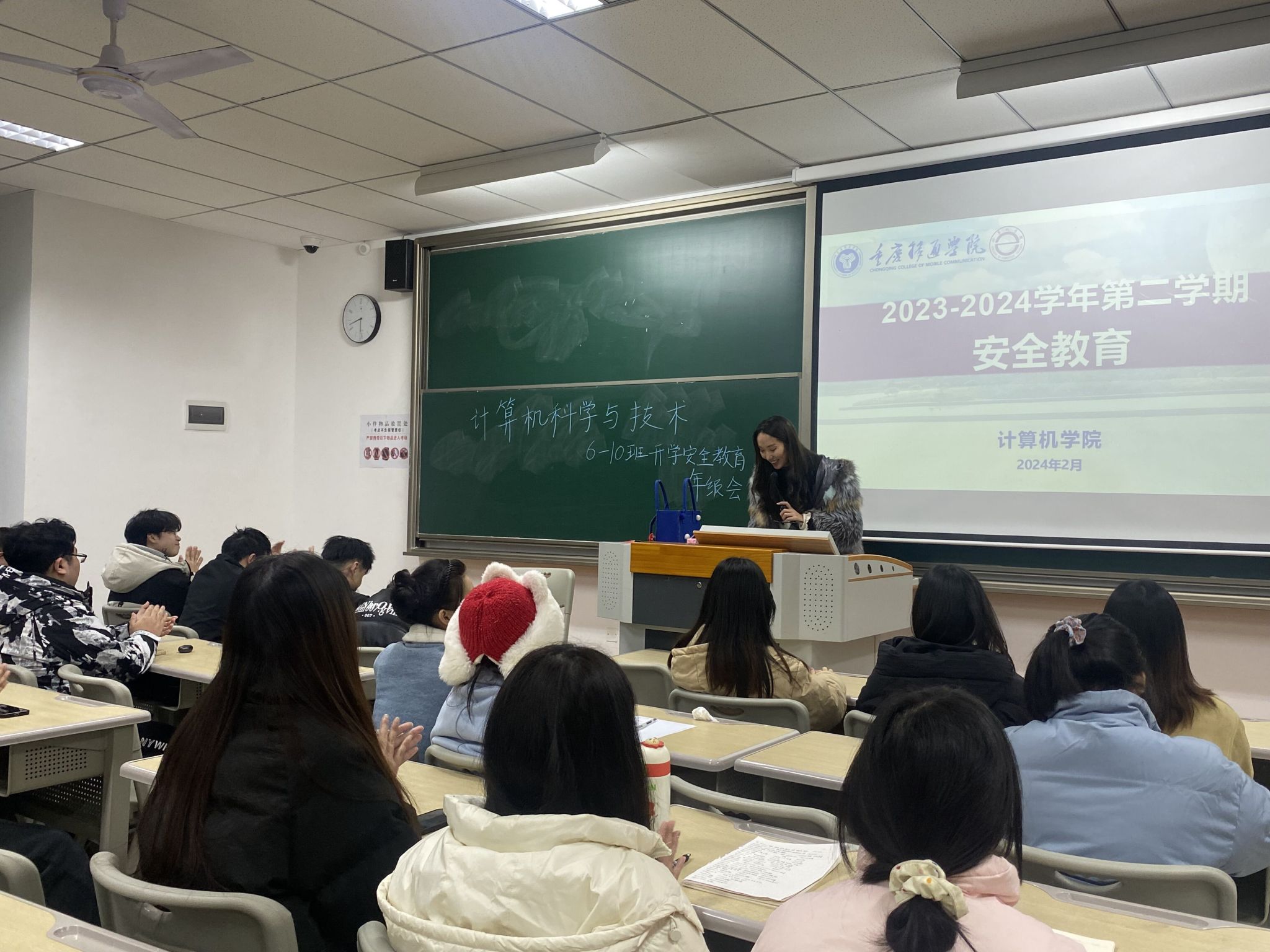 各辅导员对学生进行了安全领域各个方面的解读,内容主要包含消防安全、食品安全、传染病预防和治疗、交通安全、预防电信诈骗和心理健康教育等。辅导员主要围绕防电信诈骗、书院卫生安全、出行安全、食品安全等方面,通过典型案例、图片等形式,深入阐述了安全的重要性,提醒同学们提高自我防护及财产安全意识,增强应对突发事件的能力,始终将“安全”铭记在心。