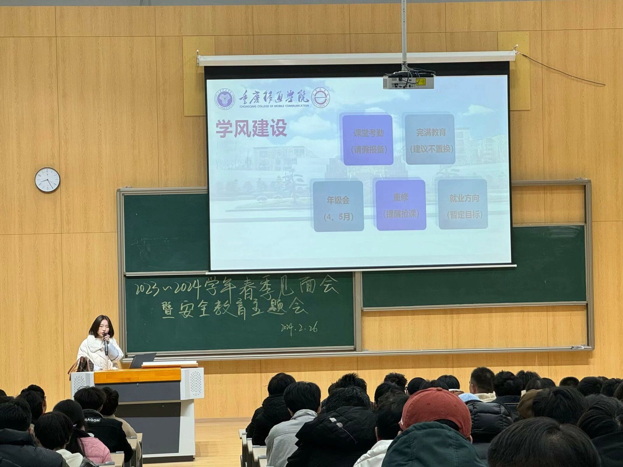 评优评先是为挖掘、表彰学生中的先进典型,为了激励学生勤奋学习,在德智体美劳等方面得到全面发展,学校特建立各项奖励机制。辅导员重点讲解了奖学金的综测来源和成绩计算方法,并对“收心归位”提出了明确要求,期望同学们保持良好的学习与作息习惯,以崭新风貌迎接新学期。