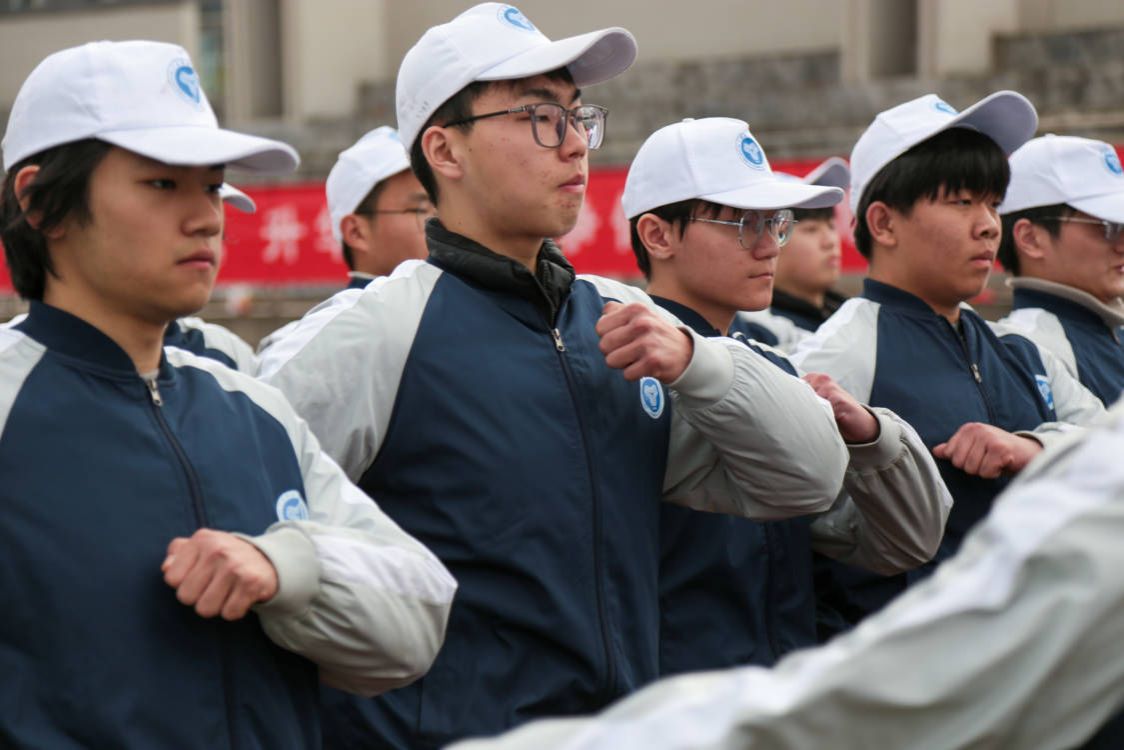 今日晴空万里无云,上千名学子经过前六日的严格训练,已经正式进入军训状态。在操场上,学子们挺拔的身姿、团结一心的配合,无一不彰显出在军训中收获的成果。