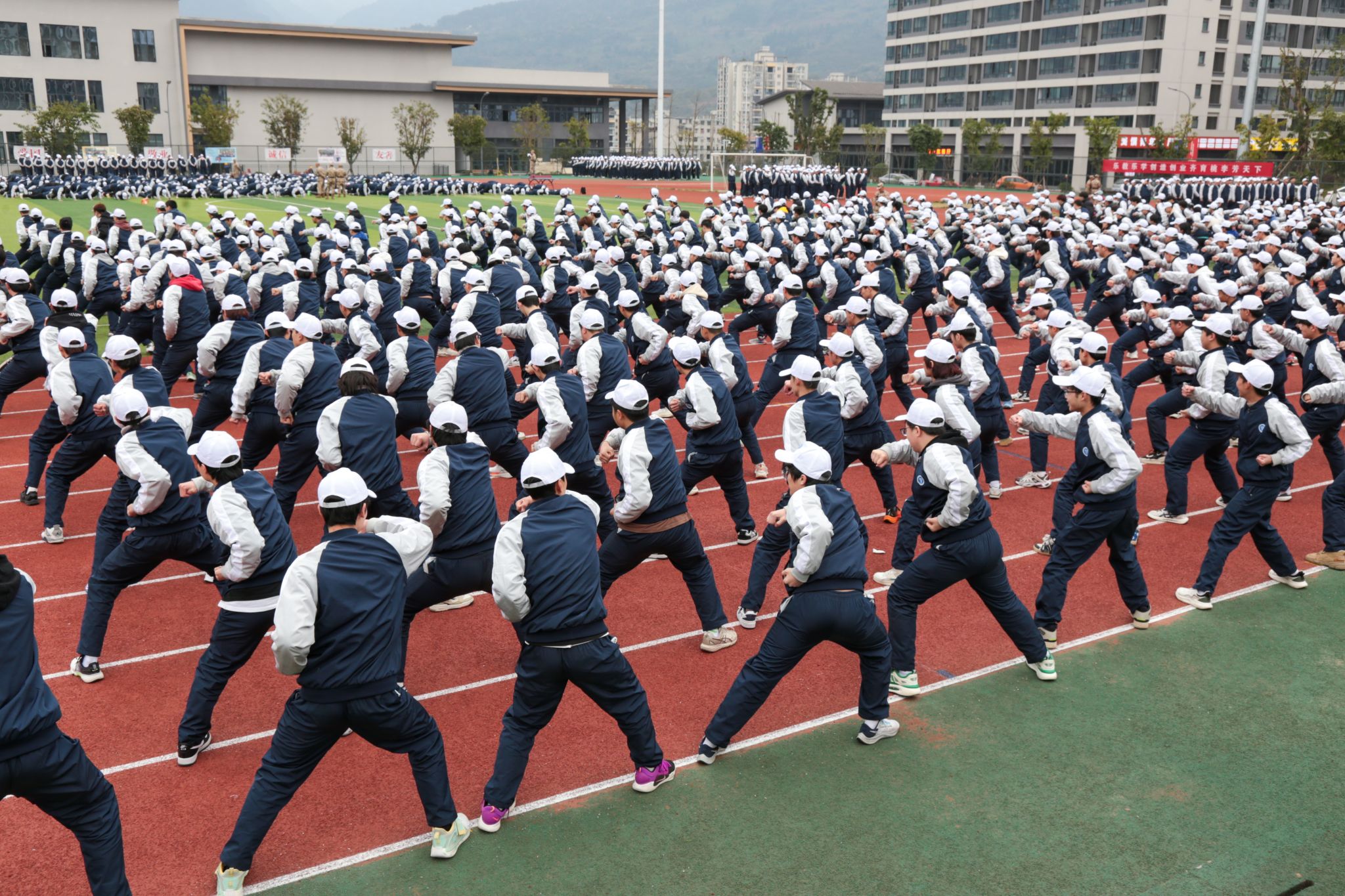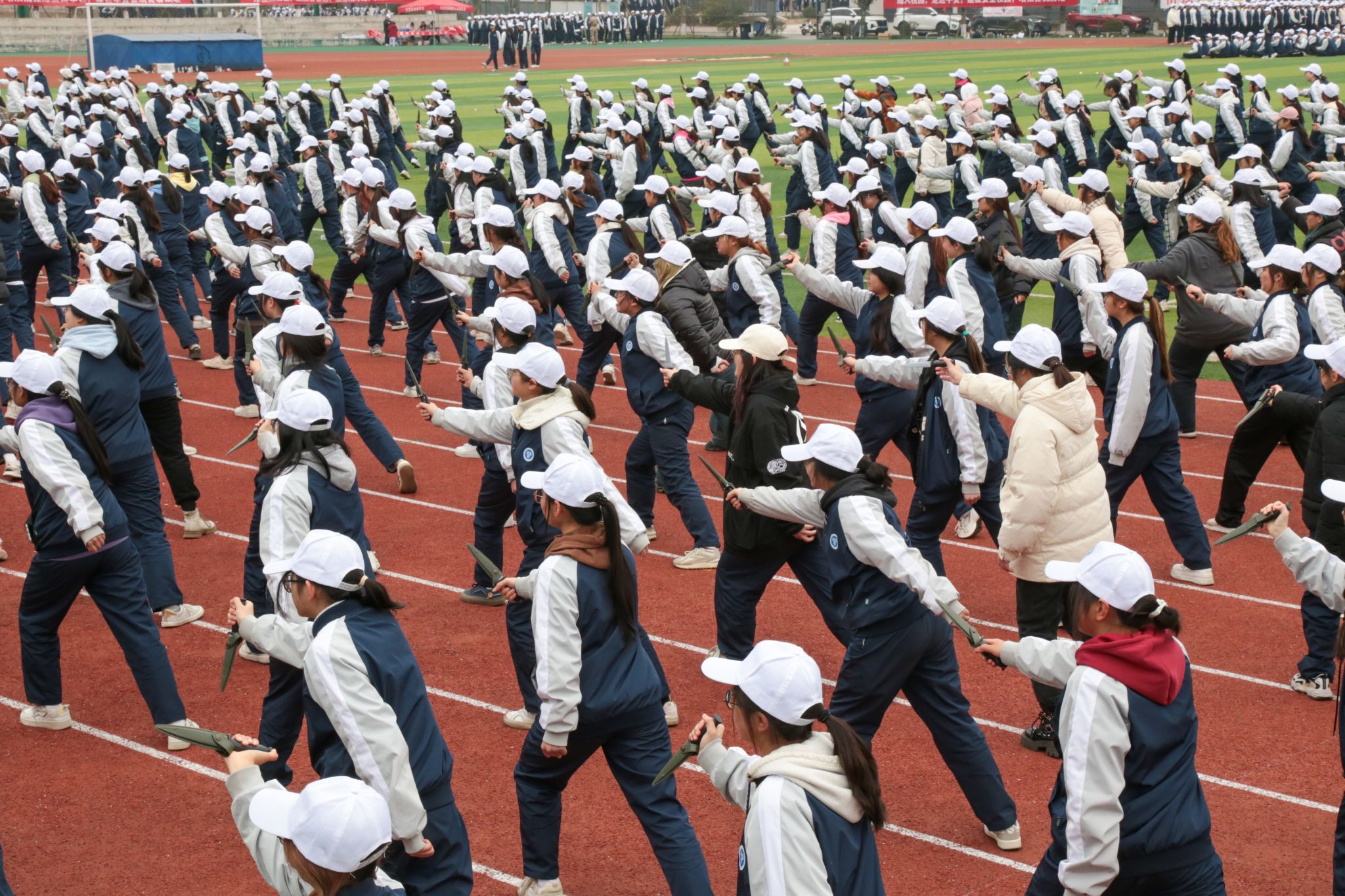 各个连队训练着各自的队列项目。军体拳、匕首操、分列式、队列式、外伤包扎等军训项目,帮助学生提升身体素质、纪律性、团队协作能力和自我保护能力,同时提高心理素质,为未来的学习和生活中的各种挑战做好准备。