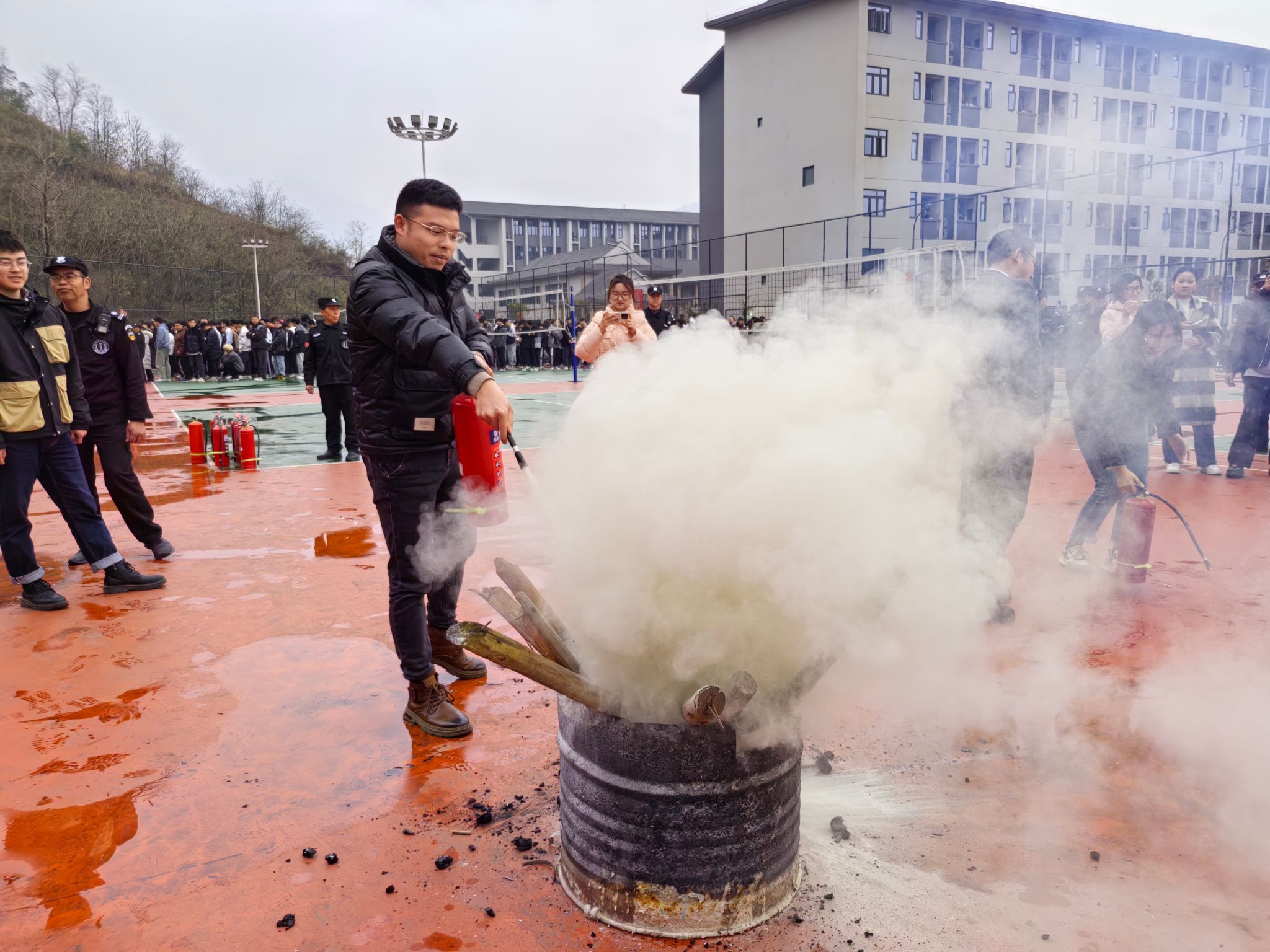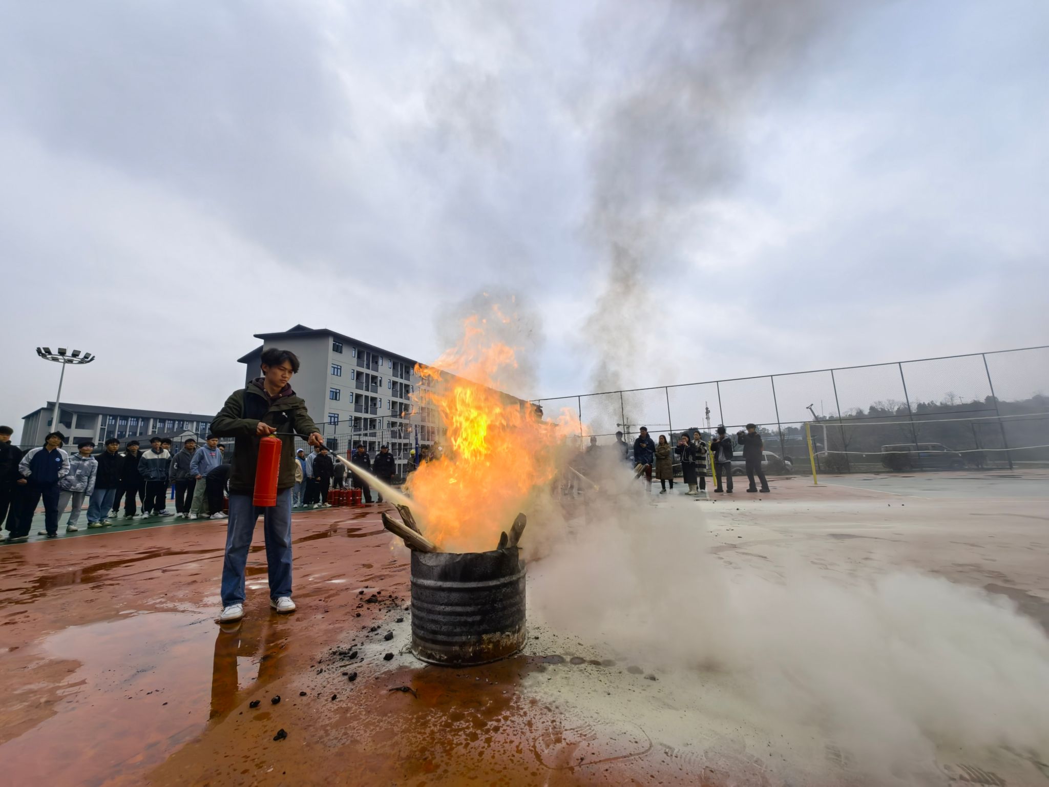 最后,师生们手持灭火器,对模拟火场进行了灭火扑救演练。通过实际操作,同学们掌握了灭火器的使用技巧,提升了初起火灾的扑救能力。