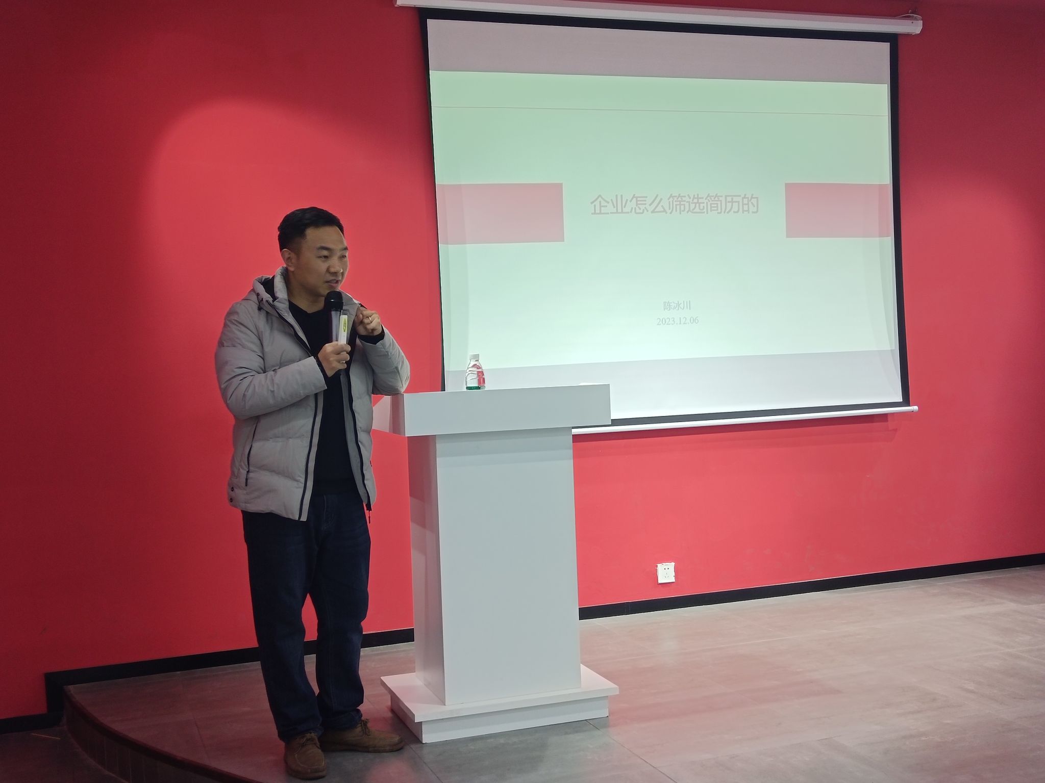 辞旧迎新,雪融春来。在崭新的一学期到来之际,计算机学院应广大同学要求,举办了一场特别的就业团辅专题讲座,主题为“用人单位如何通过简历选人”。本次讲座荣幸邀请到了新商科教学部陈冰川老师作为特邀讲师,旨在为参与者提供更深入的就业指导和招聘技巧。活动于2024年3月6日在玉棠书院Talk King演讲中心举行。