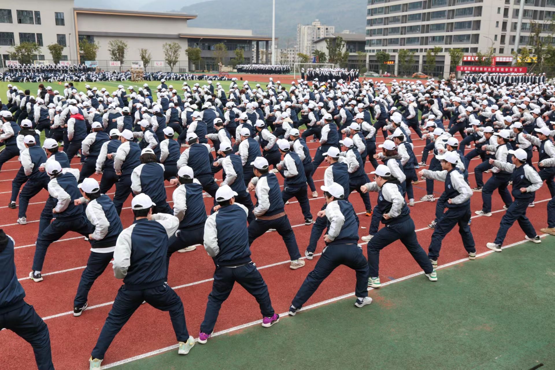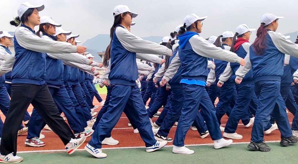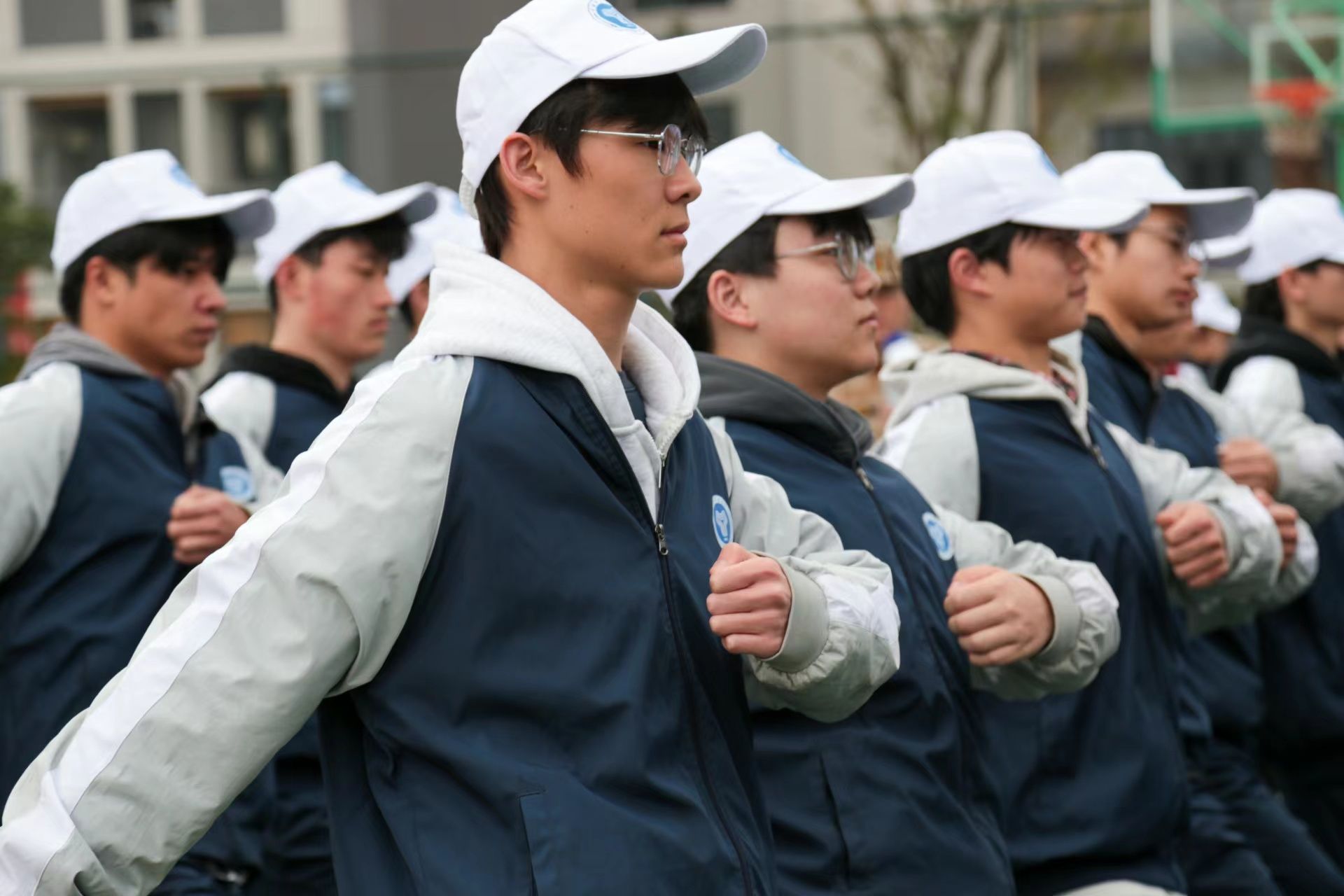 “黄沙百战穿金甲,不破楼兰终不还。”男生军体拳方阵训练气势汹汹。在校操场上,男生们整齐划一地排列成方阵,一击一打,一步一踏,淋漓尽致的展现出军人般的风采。他们严格遵守纪律,在训练时刻中保持高度集中,表现出团队协作和纪律性。