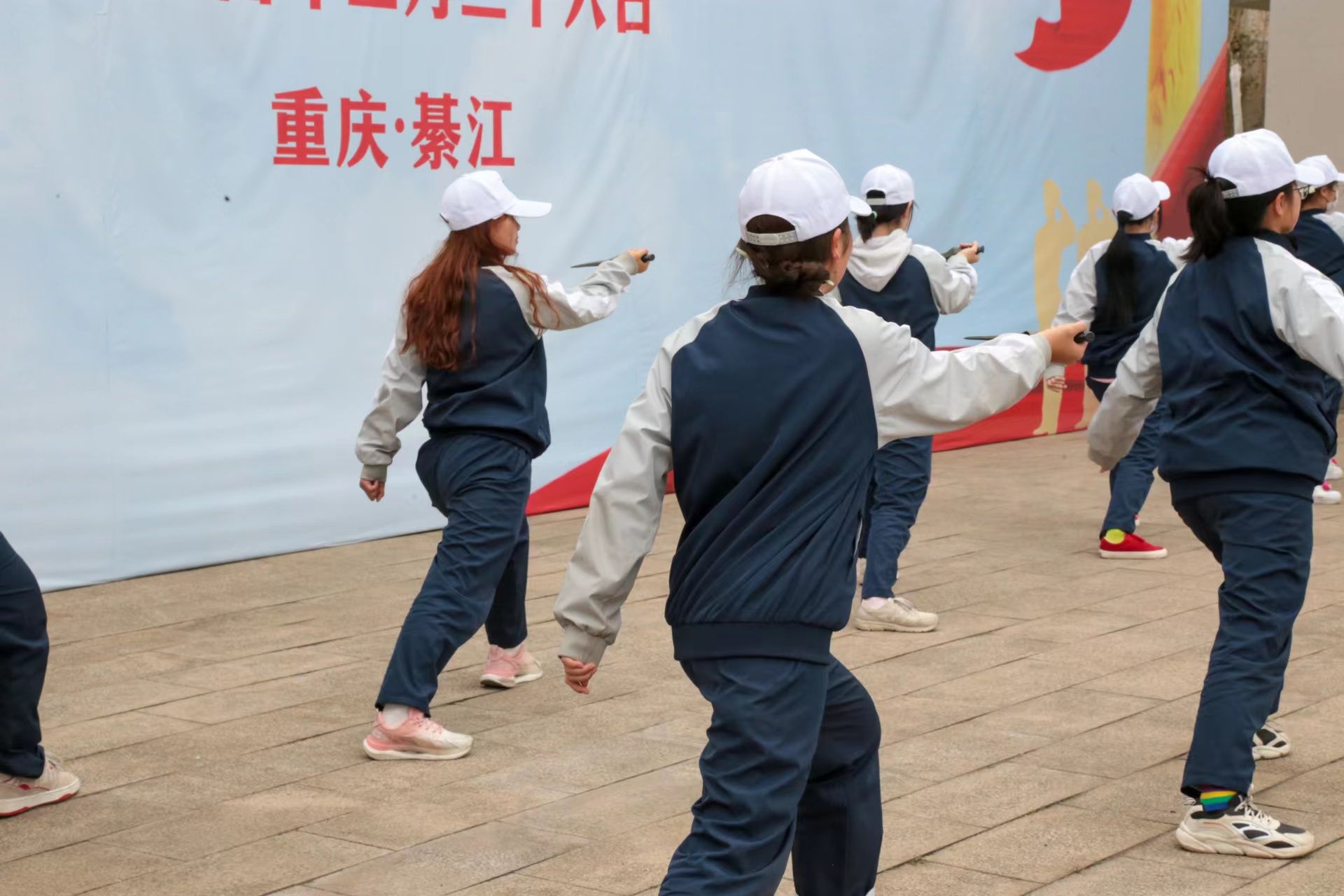 “中华儿女多奇志,不爱红装爱武装。”匕首操方阵由女生组成,嘹亮的口号,利落的动作,展示出她们巾帼不让须眉的豪情。口号嘹亮,气势震天,教官一声令下,摆好阵势,手握匕首,一招一式精准有力,踏出了青春的风采,喊出了时代的强音!
