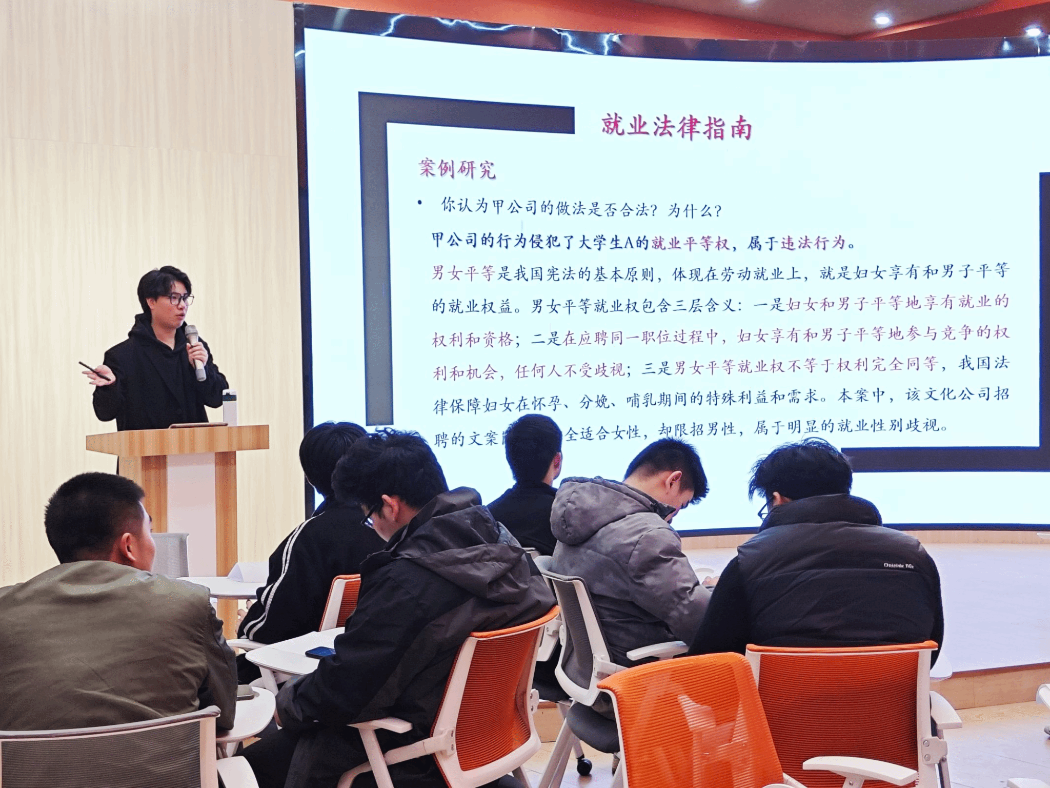 在讲座中,刘达老师首先介绍了我国当前的就业形势及相关政策法规,让同学们对就业市场有了更加清晰的认识。接着,他重点讲解了劳动合同、试用期、工资待遇、社会保险等方面的法律知识,提醒同学们在签订劳动合同时要注意条款的合理性和合法性,避免自己的权益受到侵害。此外,刘老师还针对一些常见的就业陷阱进行了警示,如虚假招聘、拖欠工资、非法解除劳动合同等,并给出了相应的应对策略。