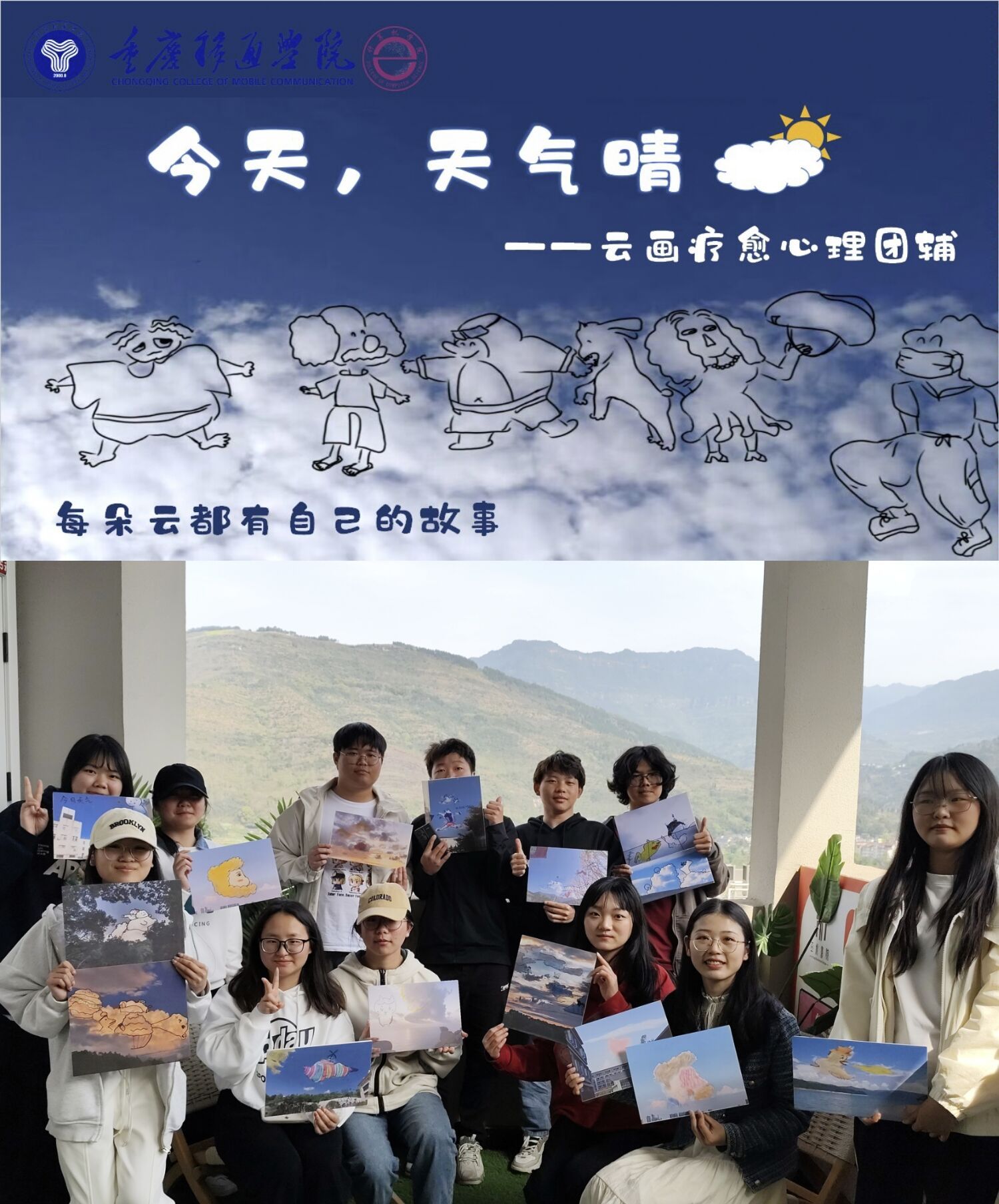 当我们抬头仰望蓝天,那些形态各异的云朵,或如棉花糖般蓬松,或似山峰般峻峭,或像小动物般灵动。每一朵云,都能触发我们不同的感受和想象,承载我们的梦想与希望。2024年3月20日,由计算机学院学生会权益女生部承办的“3.20”幸福教育周接力幸福——“今天,天气晴”云画疗愈心理团辅,在玉棠书院·云里发呆室顺利开展。活动面向重庆移通学院綦江校区计算机学院全体同学,由谢沅红老师带领我们一起展开想象,描绘出心中的故事。