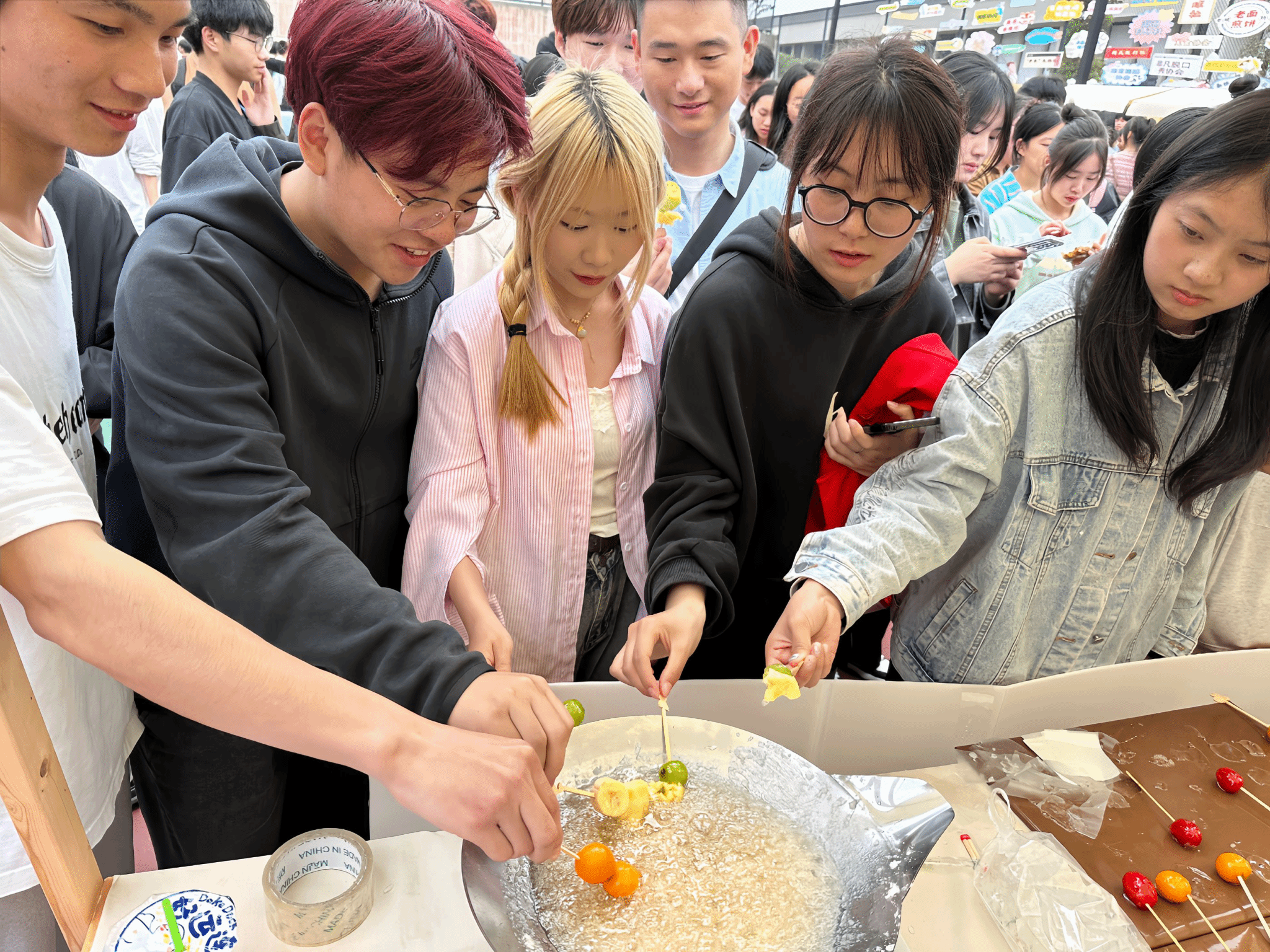 2024年3月27日下午四点,綦江校区校团委学生社团管理中心携手各学院及社团共同举办了一场别开生面的移通的集市之“长桌宴”春潮集市活动。计算机学院学生会权益女生部进行了冰糖葫芦的制作。通过冰糖葫芦的制作,不仅弘扬中国的传统美食文化,同时也为同学们带来的味觉上的深刻体验。