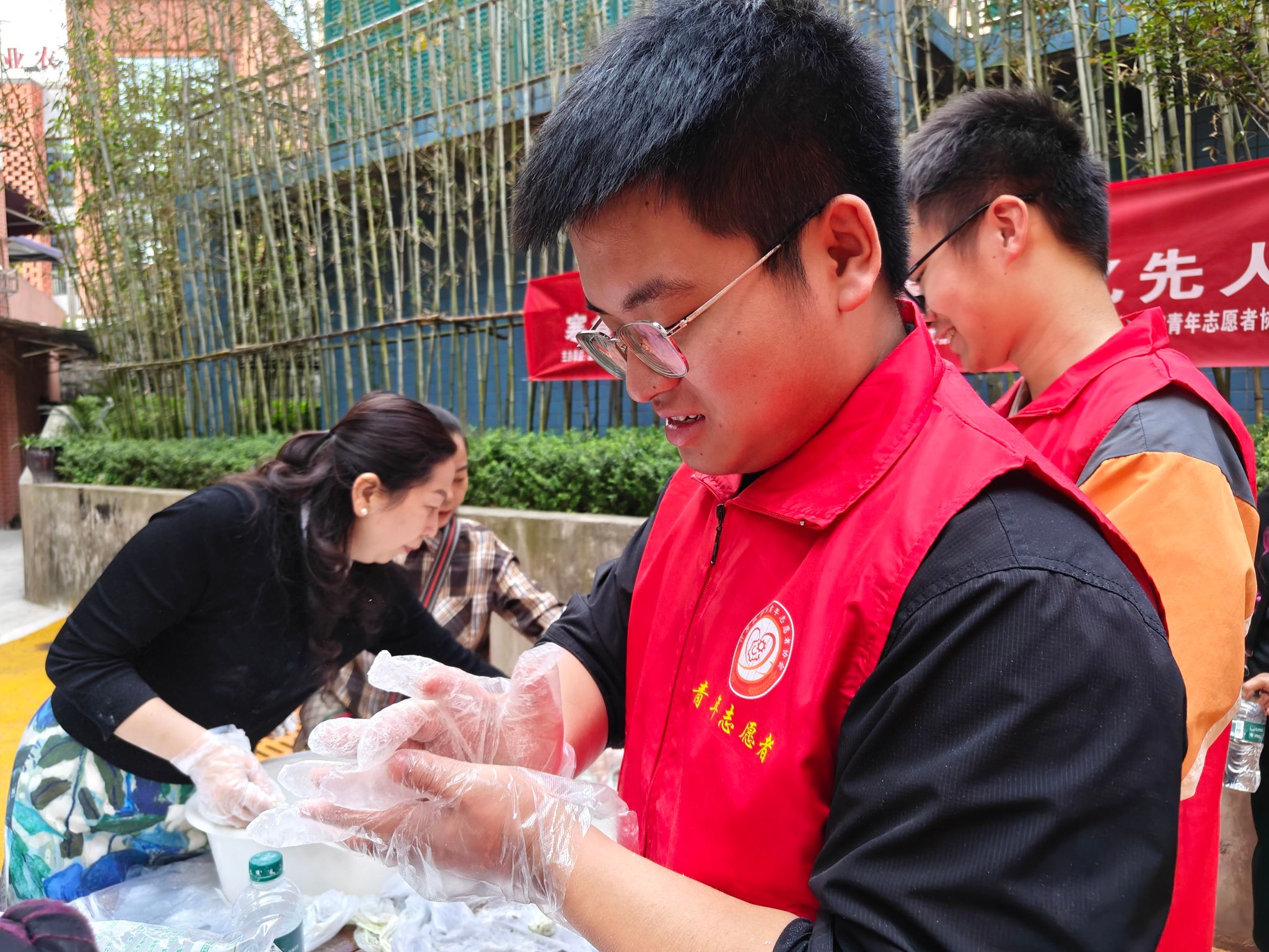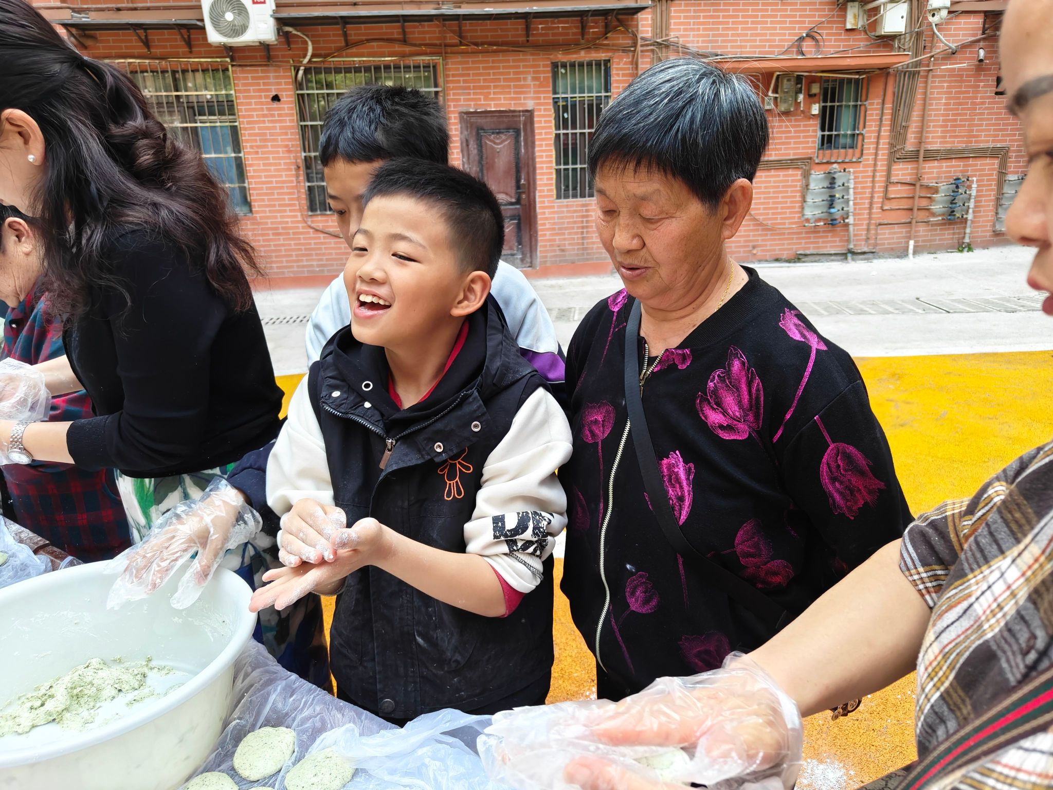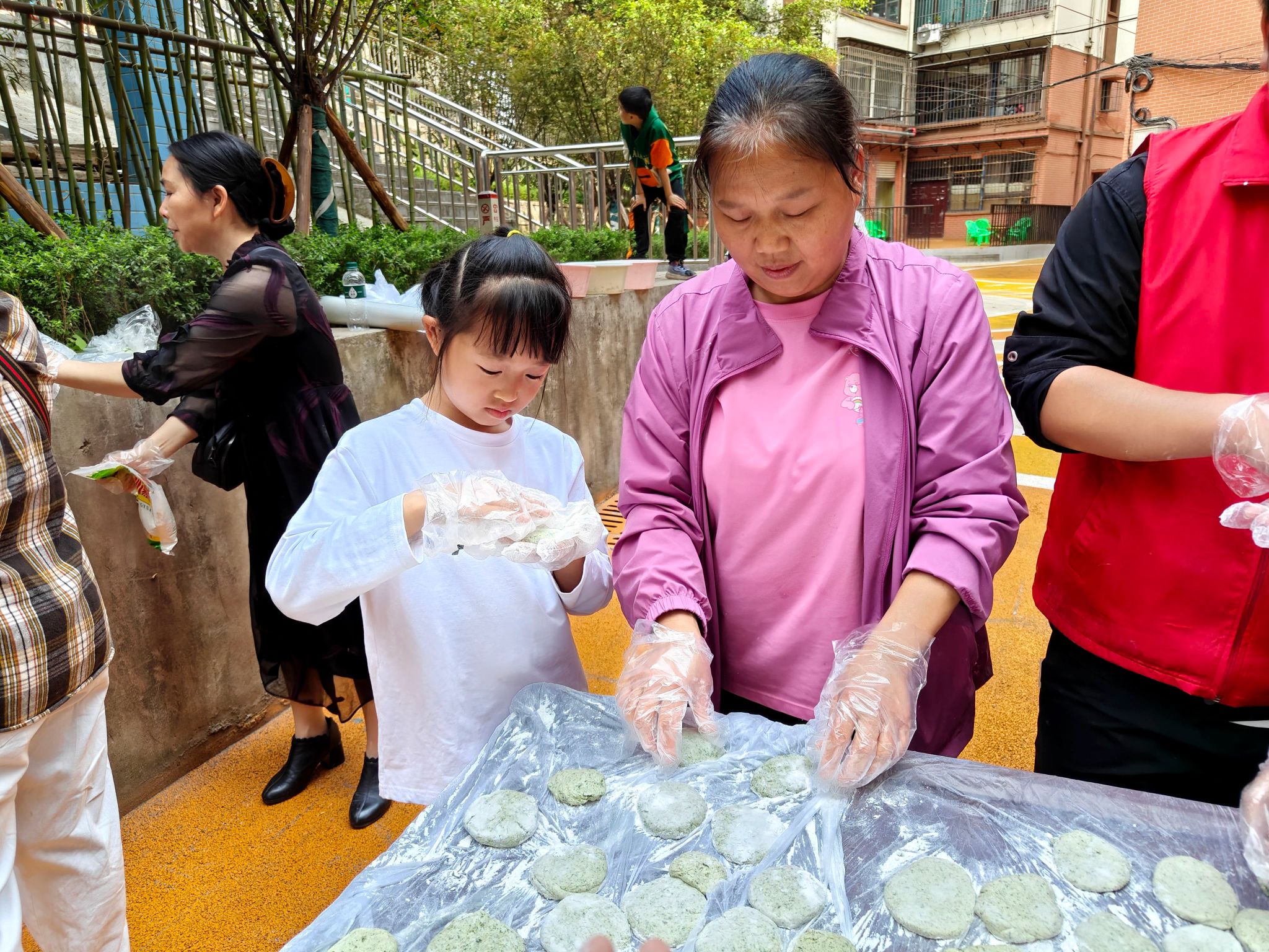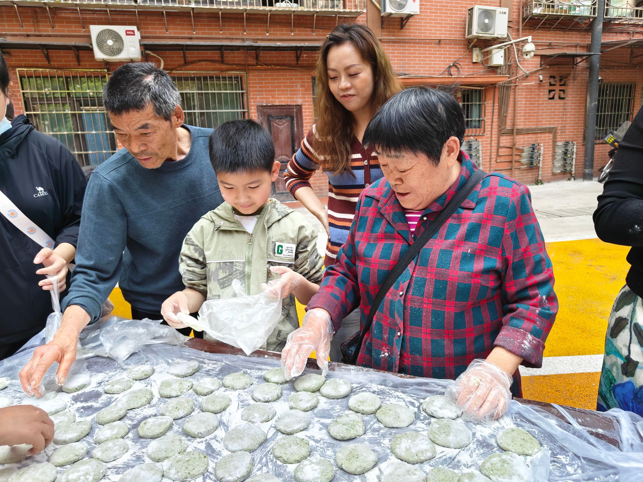 随后,志愿者们与社区居民共同参与了一场充满温情的清明粑制作活动。老一辈的手艺人耐心地指导着年轻一代,志愿者们则在其中架起了一座桥梁,让传统技艺得以跨越时间的河流,流传至今。欢声笑语中,一个个清明粑承载着记忆与情感,成为了连接过去与未来的纽带。