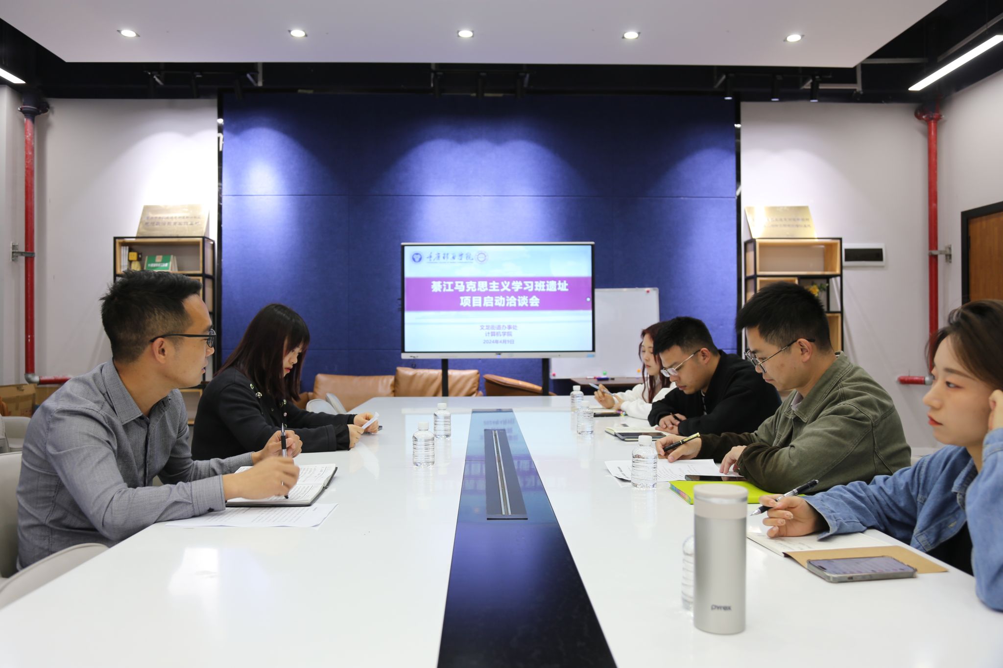 为了传承和弘扬革命精神,使参与者更全面地了解党的光辉历程和革命先驱的英勇事迹,计算机学院与文龙街道于4月10日就“红色研学·信仰之路”开幕活动的详细策划及实施进行了深入沟通和交流。出席此次洽谈会的人员有文龙街道宣传中心主任王世康、文化服务中心杨璞,计算机学院学工副院长周俊、团总支书记张雄以及志愿服务、青马工程、学院宣传版块指导老师们共同参与。