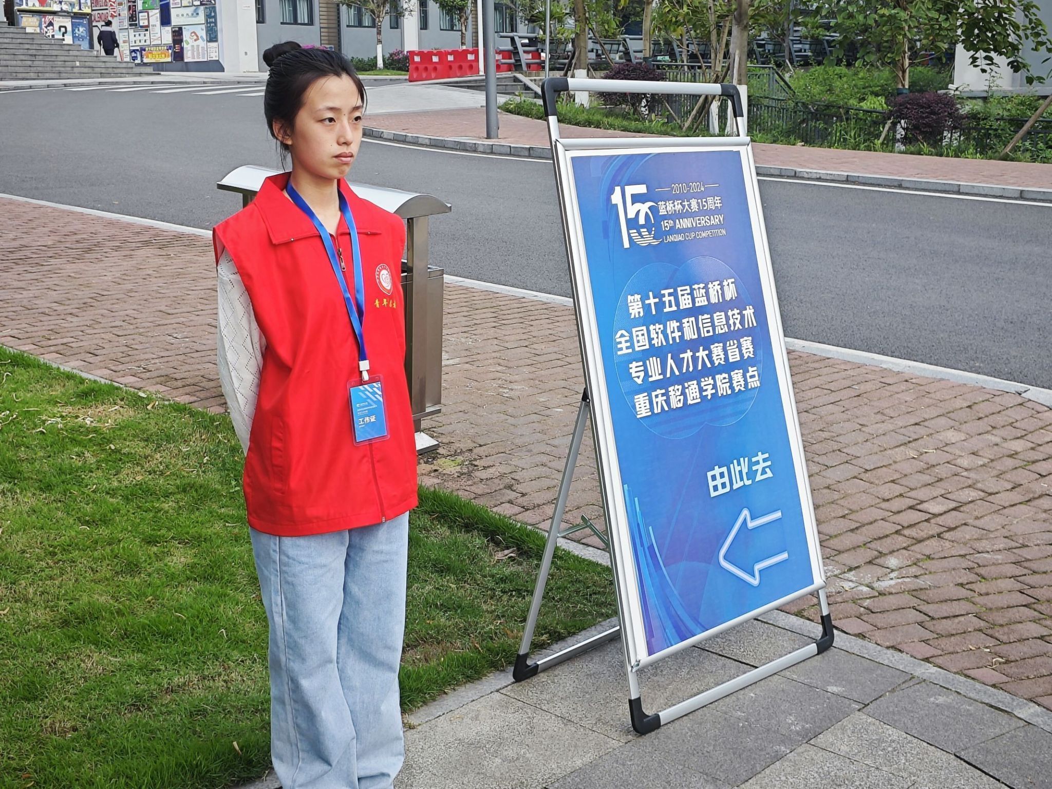 后勤工作完备,在各分组人员就位后,标志着“蓝桥杯”志愿服务工作正式开启。比赛当天,部分志愿者早早来到校园入口,为选手们提供导航指引服务,协助考生定位比赛地点。他们跟随路线指向,带领考生来到考点,并温馨提醒考生做好赛前准备。他们的身影穿梭在校园的各个角落,用实际行动诠释着移通学子的志愿服务精神。