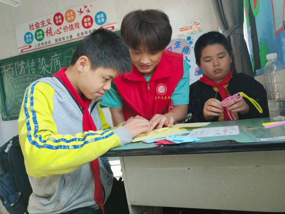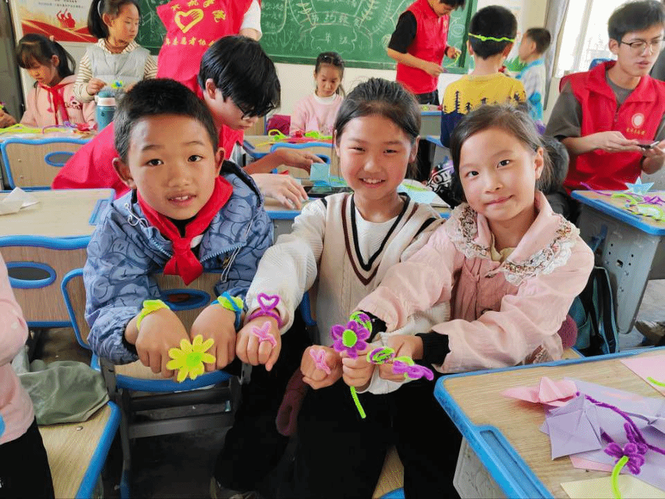 4月19日下午14:00,“綦”欢团 艺疗“育”关爱儿童志愿服务活动在万兴小学正式开展。为了更好地与孩子们建立深厚的情感联系,移通学院的志愿者们提前学习了编扭扭绳、折卡纸等富有趣味性的互动小游戏,在有限的活动时间,为校园营造出一种欢乐、和谐的氛围。