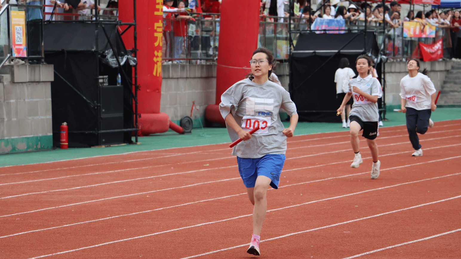 接力棒在你我之间传递,带着火光和热情,我们的眼光交汇于永恒、团结和友爱。400米接力赛也带来了喜讯,女子组与男子组分别取得了第二以及第四的佳绩。